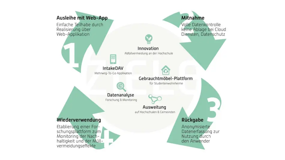 Mit der Novelle des Kreislaufwirtschaftsgesetzes, der Einwegkunststoffverbotsverordnung und den EU-Ökodesign-Produktverordnungen kommt der Langlebigkeit, Reparierbarkeit und Zirkularität von Konsumgütern, insbesondere von Mehrwegsystemen im Verpackungssektor, eine wachsende Bedeutung zu. Mehrwegverpackungen werden gegenwärtig im Handel oder auf Veranstaltungen auf der Basis von Pfandregelungen gesteuert oder aber sie basieren auf der rein freiwilligen Rückgabe von Verpackungen. Das Handling ist häufig aufwendig, die Berechnung und Erstattung von Pfandgebühren lästig. Aus diesem Grund gelten Mehrwegsysteme häufig als unattraktiv und ineffizient. Hinzu kommt die Herausforderung des nachhaltigen Umgangs mit zurückgegebenen Mehrwegbehältnissen, z.B. ihrer Reinigung und sicherem Hygienisieren im Rahmen neuer Herausforderungen wie einer Pandemie.
