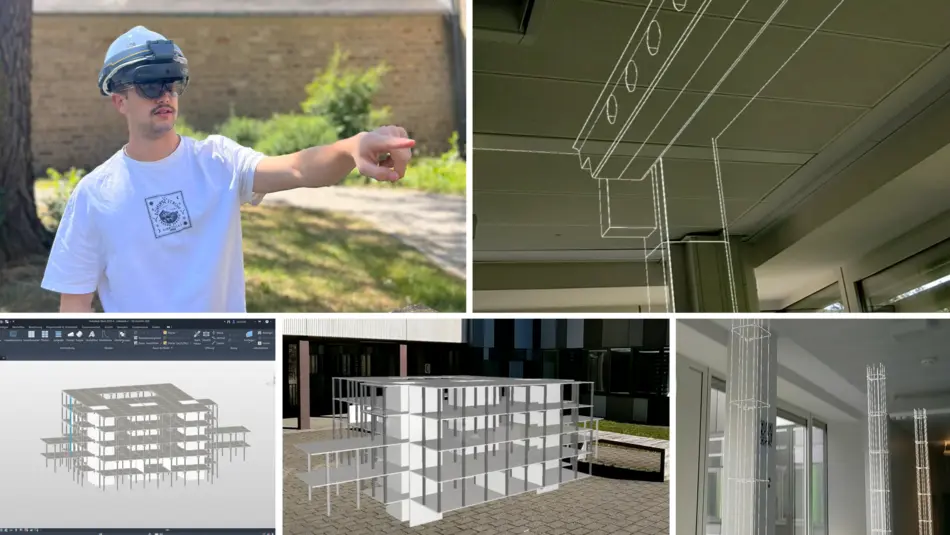 Im Rahmen des Forschungsvorhabens MiReB wird Prof. Dr. Yannick Broschart an der Hochschule Trier daher den Einsatz von Mixed Reality Brillen zur Visualisierung digitaler Zwillinge in der Baupraxis erforschen. Dazu werden virtuelle Bauwerksmodelle im Sichtfeld der Brillennutzer über reale Bauwerke überlagert. Die Brillenträger können sich dann durch reale Bauwerke bewegen und simultan die wesentlichen Planungsdaten an den entsprechenden Stellen angezeigt bekommen. Innerhalb des Projektes werden sowohl die Nutzbarkeit der Technologie zur Bauausführung als Alternative zu konventionellen Papierplänen als auch die damit verbundenen technischen Hürden untersucht.