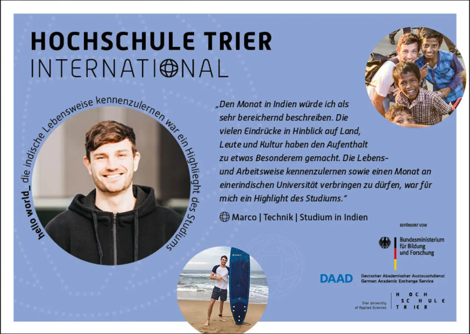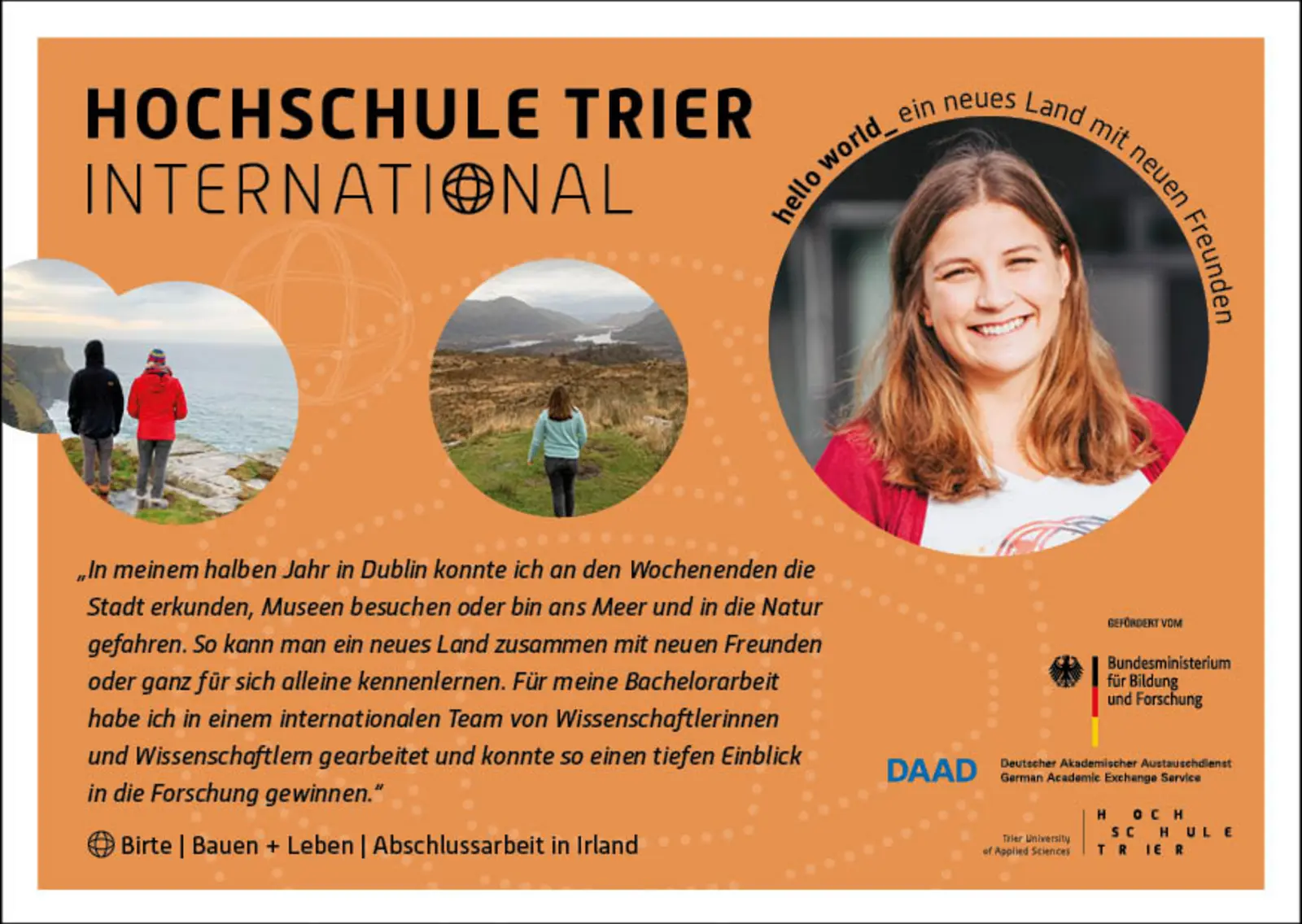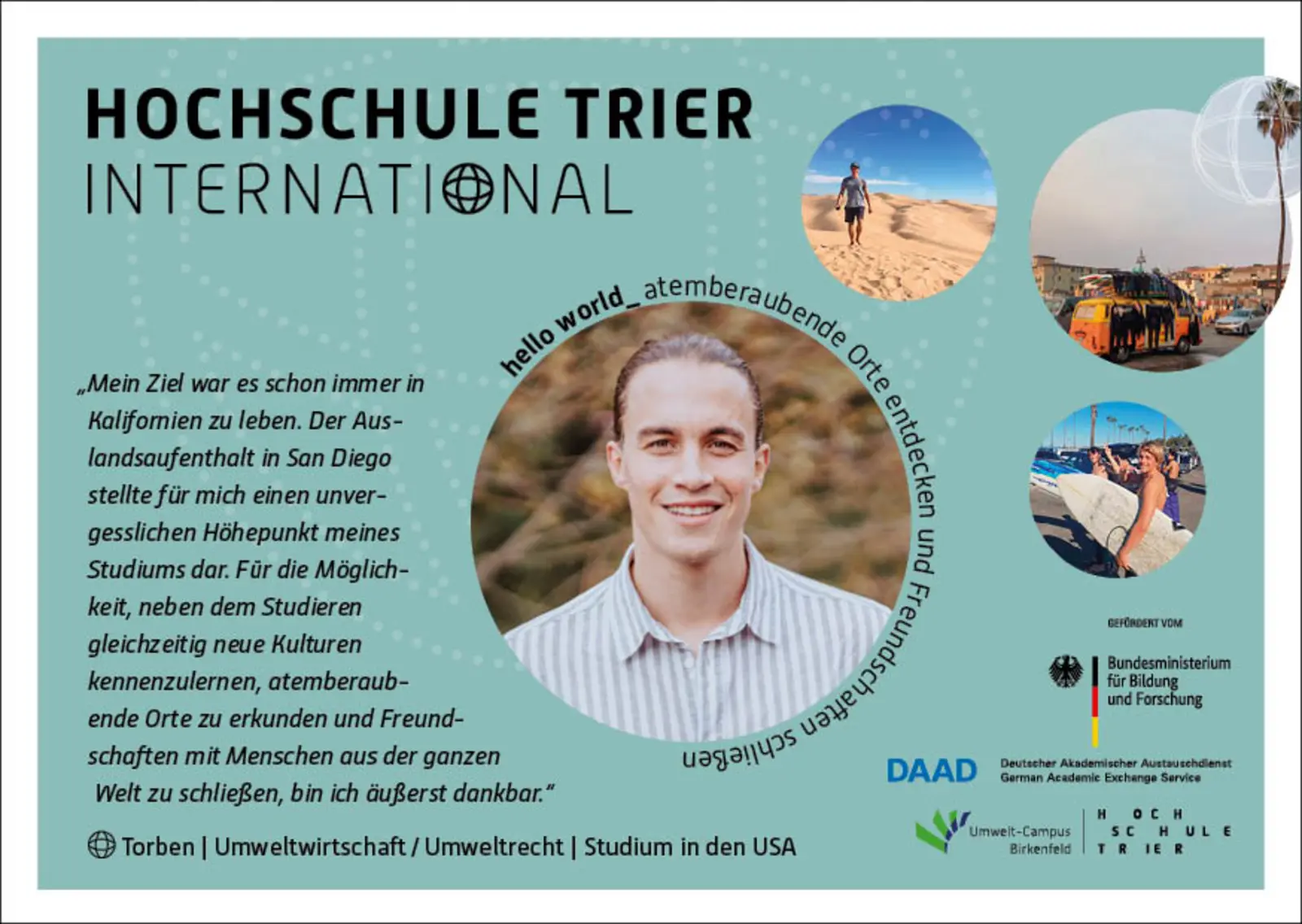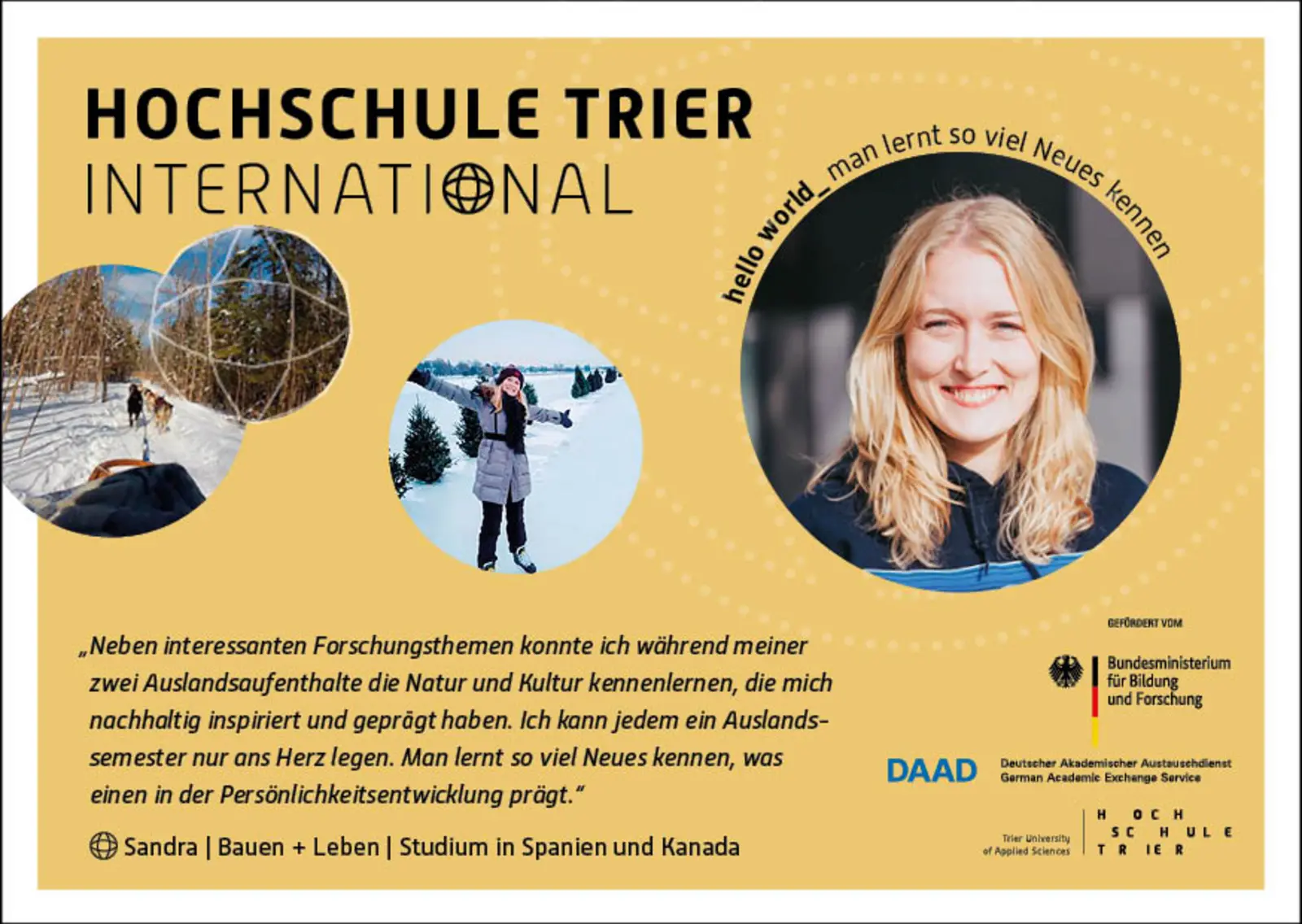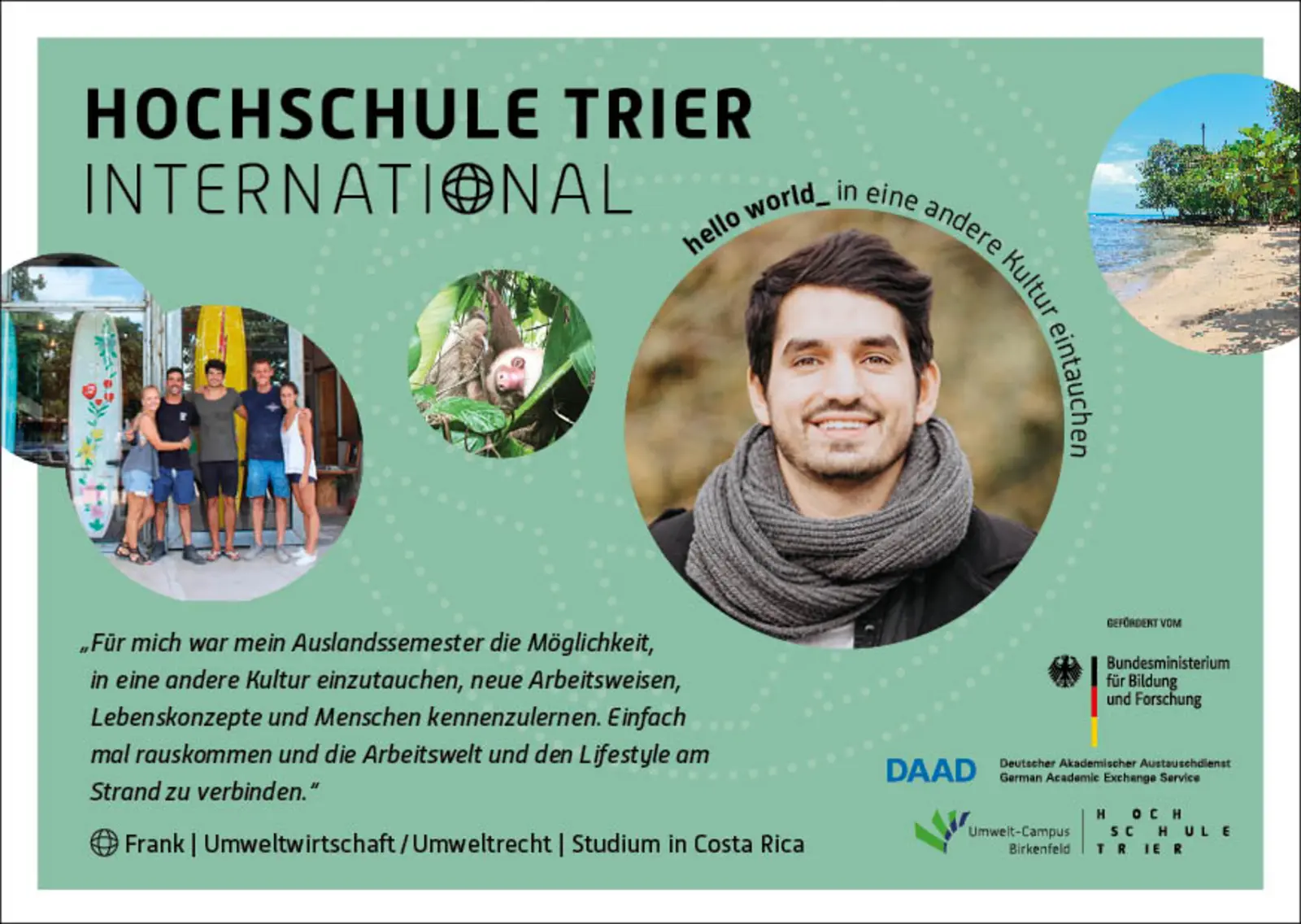 Hier seht ihr eine Postkartenserie mit unseren Studierenden aus dem Ausland und unseren Studierenden, die eine Auslandserfahrung sammeln konnten. Warum die Erfahrung für sie persönlich und beruflich bereichernd war, erzählen sie hier.