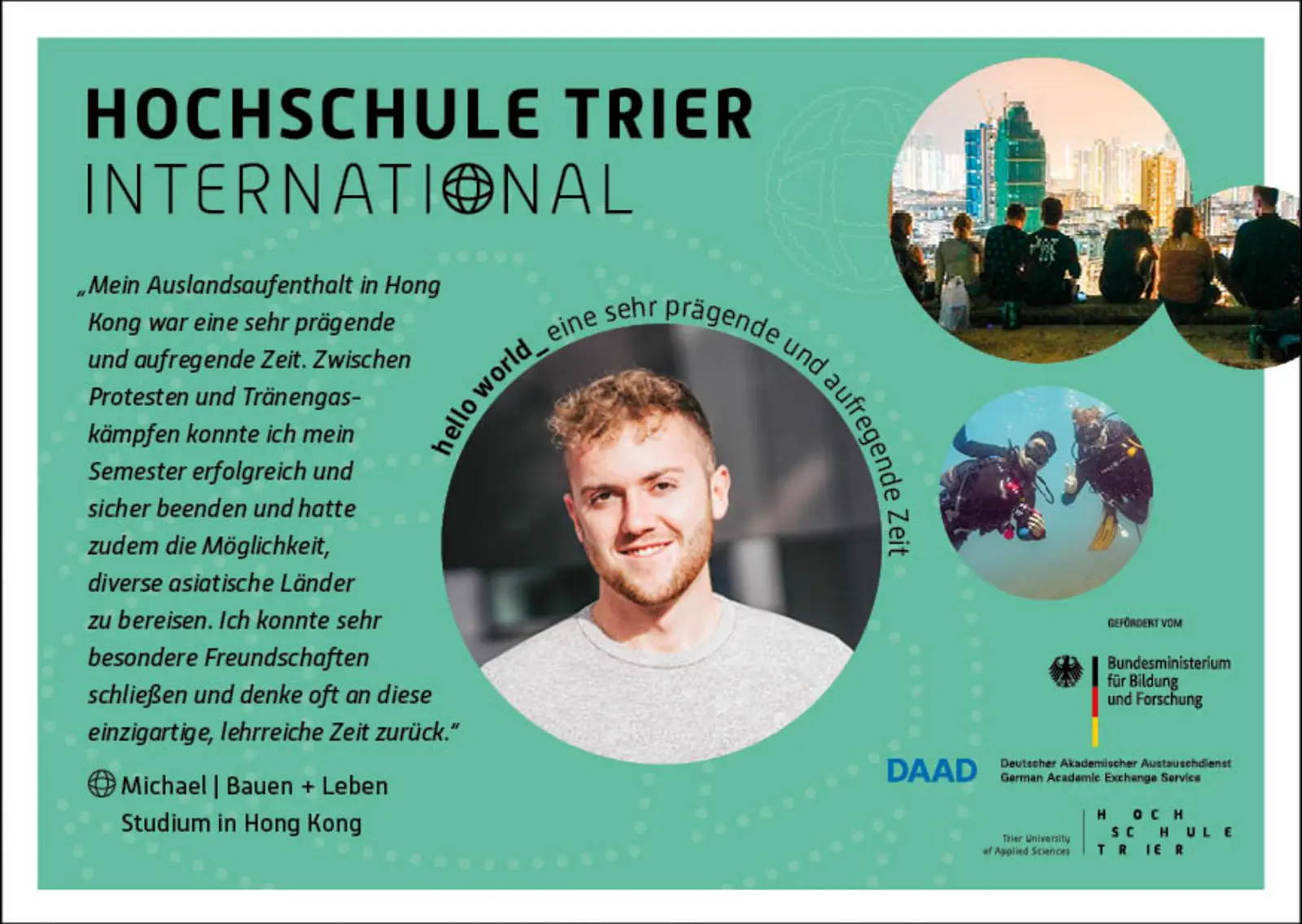 Unsere studentischen Reporter teilen ihre Erfahrungen aus dem Auslandssemester - in Trier und weltweit. So erfahrt ihr erster Hand, wie ein Auslandspraktikum und -studium abläuft. Außerdem gibt es Tipps für euren eigenen Auslandsaufenthalt.
