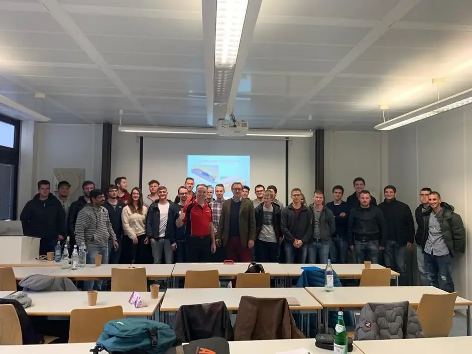 Da lässt es sich auch der australische Chassis-Sim Gründers Danny Nowlan nicht nehmen, einen Gastvortrag in der Hochschule zu geben, um neben Herangehensweisen zur Ermittlung des richtigen Fahrwerkssetups auch von geschichtlichen Hintergründen des Simulations-Tools zu erzählen. Vermutlich nicht, ohne noch einen Abstecher zum nahegelegenen Nürburgring zu machen.