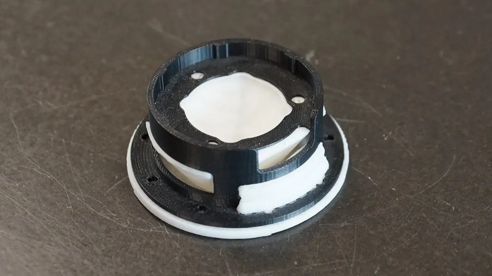 Die Halterung wurde im FDM-Verfahren sowohl mit PLA-Kunststoff, als auch ABS-Kunststoff gedruckt, da sich das Bauteil besonders gut eignet, um die Unterschiede zwischen den beiden Druckern und insbesondere dem Stützmaterial herauszustellen.