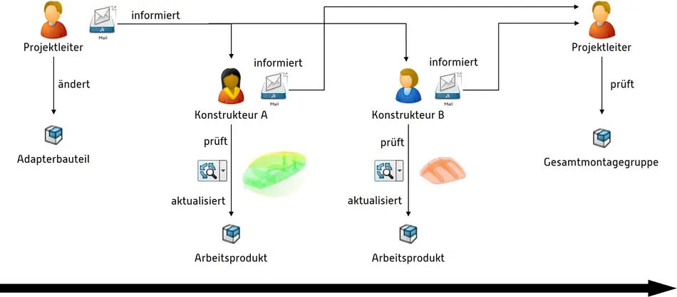 Der digitale Produktentstehungsprozess als auch die in der Regel nachgelagerte Fertigung, speziell die damit verbundenen Prozessabläufe bei der Einführung und im Betrieb dieser Technologien, erfordern allerdings ein hohes Maß an Kooperation/Koordination – innerhalb der verschiedenen Abteilungen der Unternehmen und zwischen allen Unternehmen, die an dem gesamten Lebenszyklus eines Produktes einen Beitrag leisten.