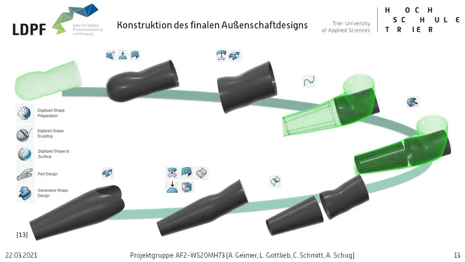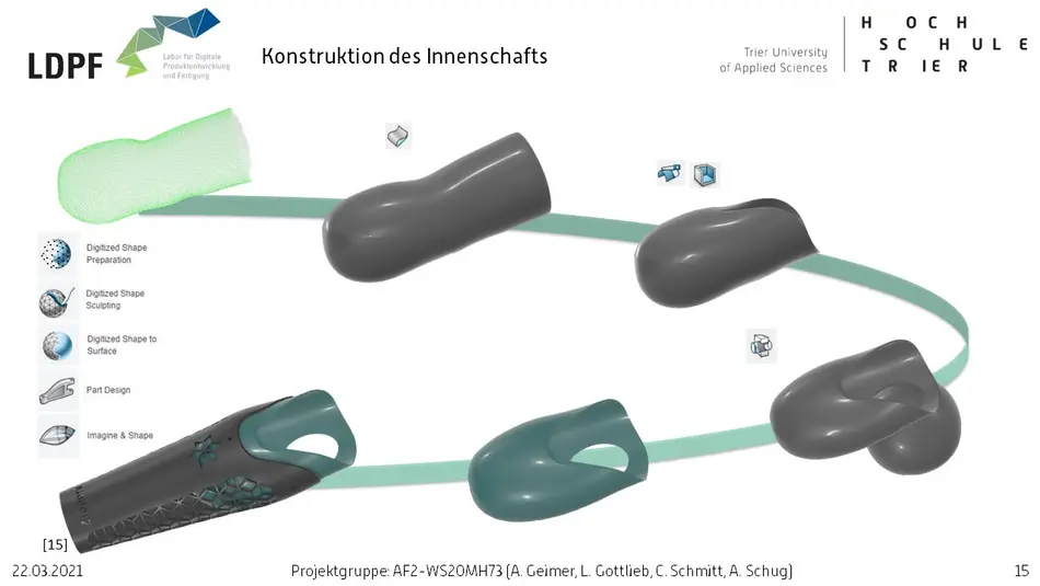 Entwicklung einer individuellen Unterarmprothese in einem vollständig digitalen Prozess vom 3D-Scan über das Generative 3D-Design (Topologie-Optimierung) bis zur Additiven Fertigung: Die Herstellung im SLS-Verfahren (Selektives Lasersintern) stellt damit eine auf den Patienten individuell in Passform und unkonventionellem Design ausgelegte Alternative zu herkömmlichen handwerklich gefertigten Prothesen dar.