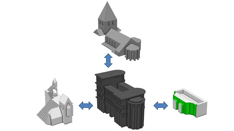 Die einzelnen Gebäudemodule wurden für den 3D-Druck aufbereitet und im FDM-Verfahren mit unterschiedlich farbigem ABS-Kunststoff gedruckt. In jedes Gebäudeteil wurden kleine Magnete integriert, die die Teile intuitiv und wie von selbst in die richtige Position rutschen lassen.