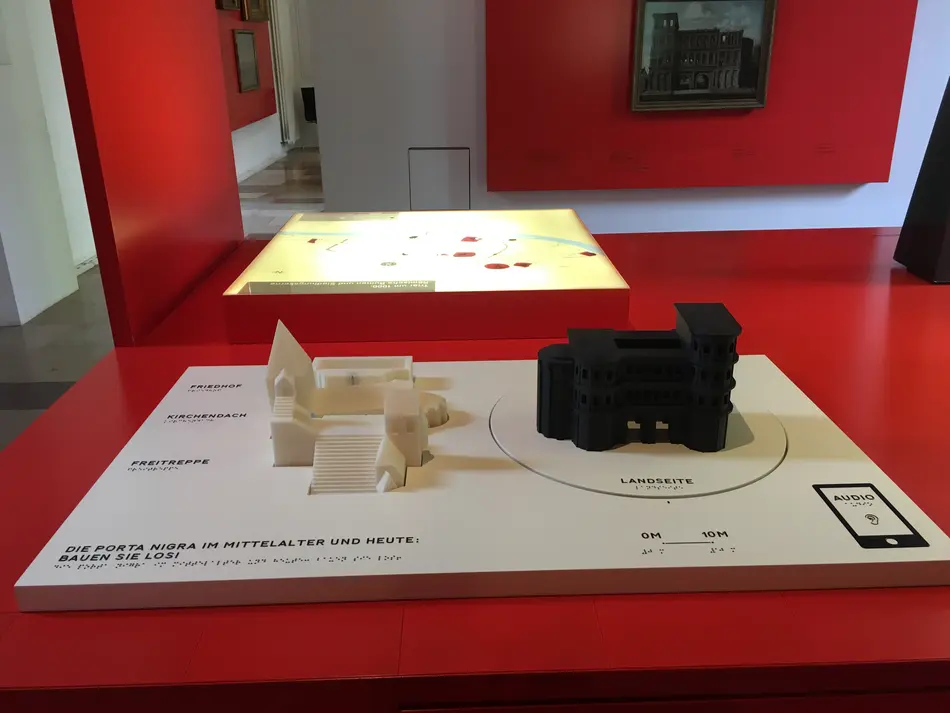 Das gedruckte Tastmodell der Prota Nigra wurde an das Stadtmuseum Simeonstift übergeben und ist dort auf einem drehbaren Teller ausgestellt, auf dem insbesondere Museumsbesucher mit Sehbeeinträchtigungen interaktiv in die Historie der Porta Nigra eintauchen können.