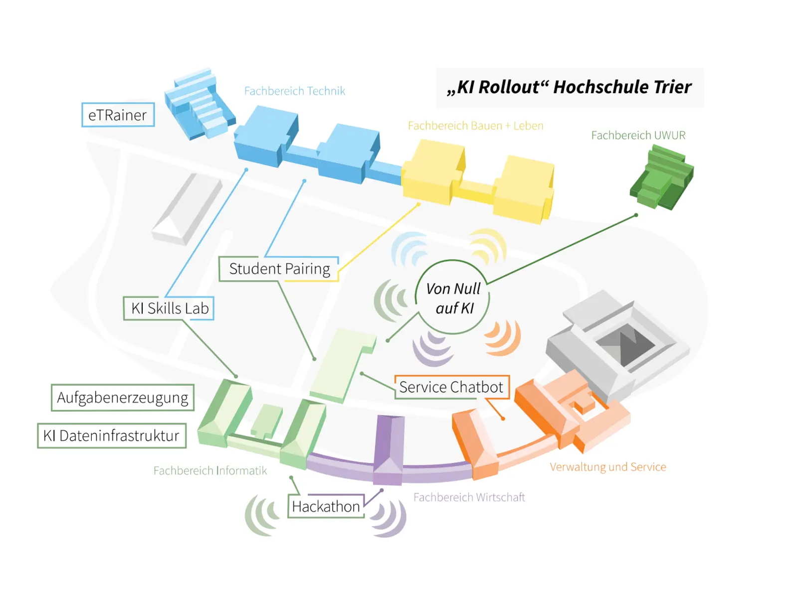 in einem gemeinsamen Forschungsprojekt mit dem Fachbereich Informatik „KI RollOut – Interdisziplinäre und individuelle KI-Kompetenzen stärken“ soll die Schlüsseltechnologie Künstliche Intelligenz und die Qualifizierung von zukünftigen akademischen Fachkräften an der Hochschule Trier gezielt gefördert werden. Im Teilprojekt „KI Student Pairing“ haben wir mit einigen Kollegen im Fachbereich Technik reale Anwendungsfelder aus unseren Fachgebieten definiert, mit hervorragender Unterstützung aus der Informatik in der Machbarkeit voruntersucht und bereits erste Lösungsansätze vorbereitet.