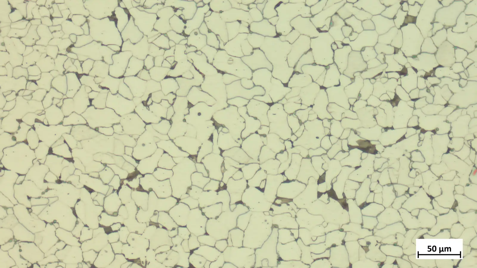Er besitzt ein ferritisch-perlitisches Gefüge mit Tertiär-Zementit-Ausscheidungen. Das Gefüge ist homogen ausgebildet und liegt im normalisierten Zustand vor.