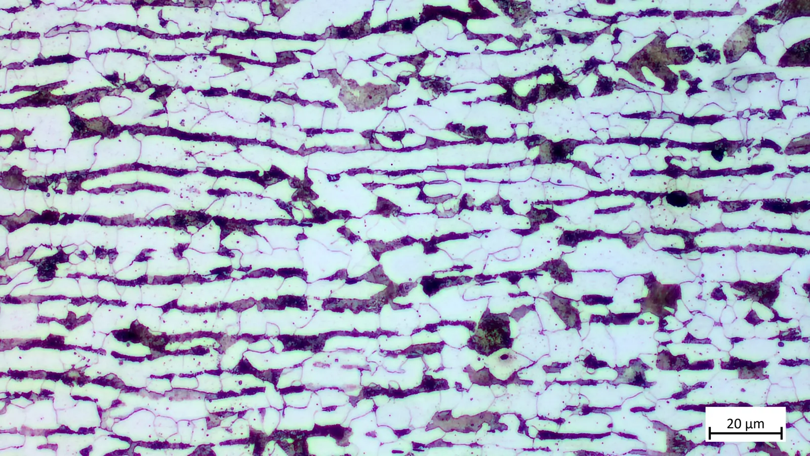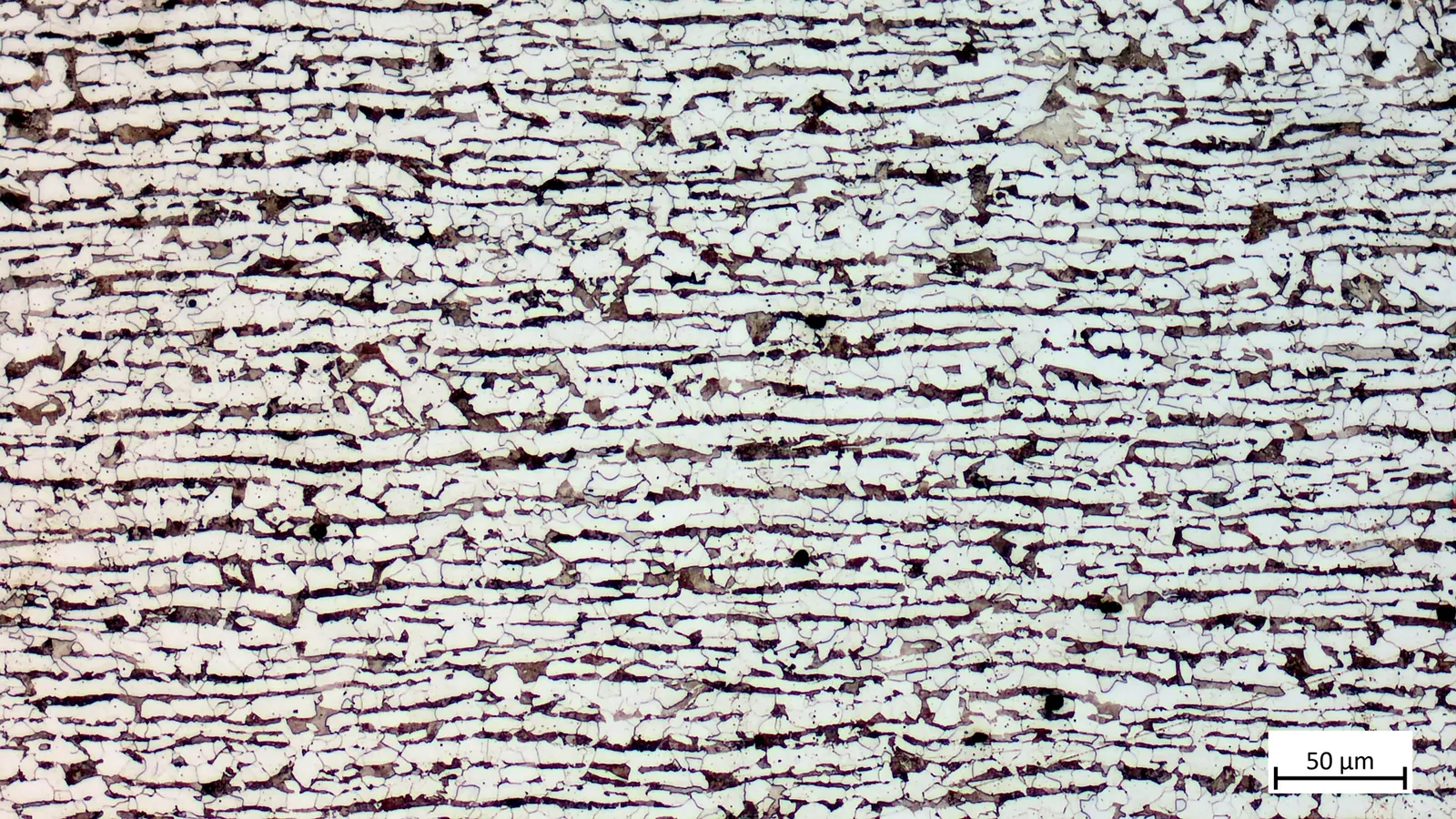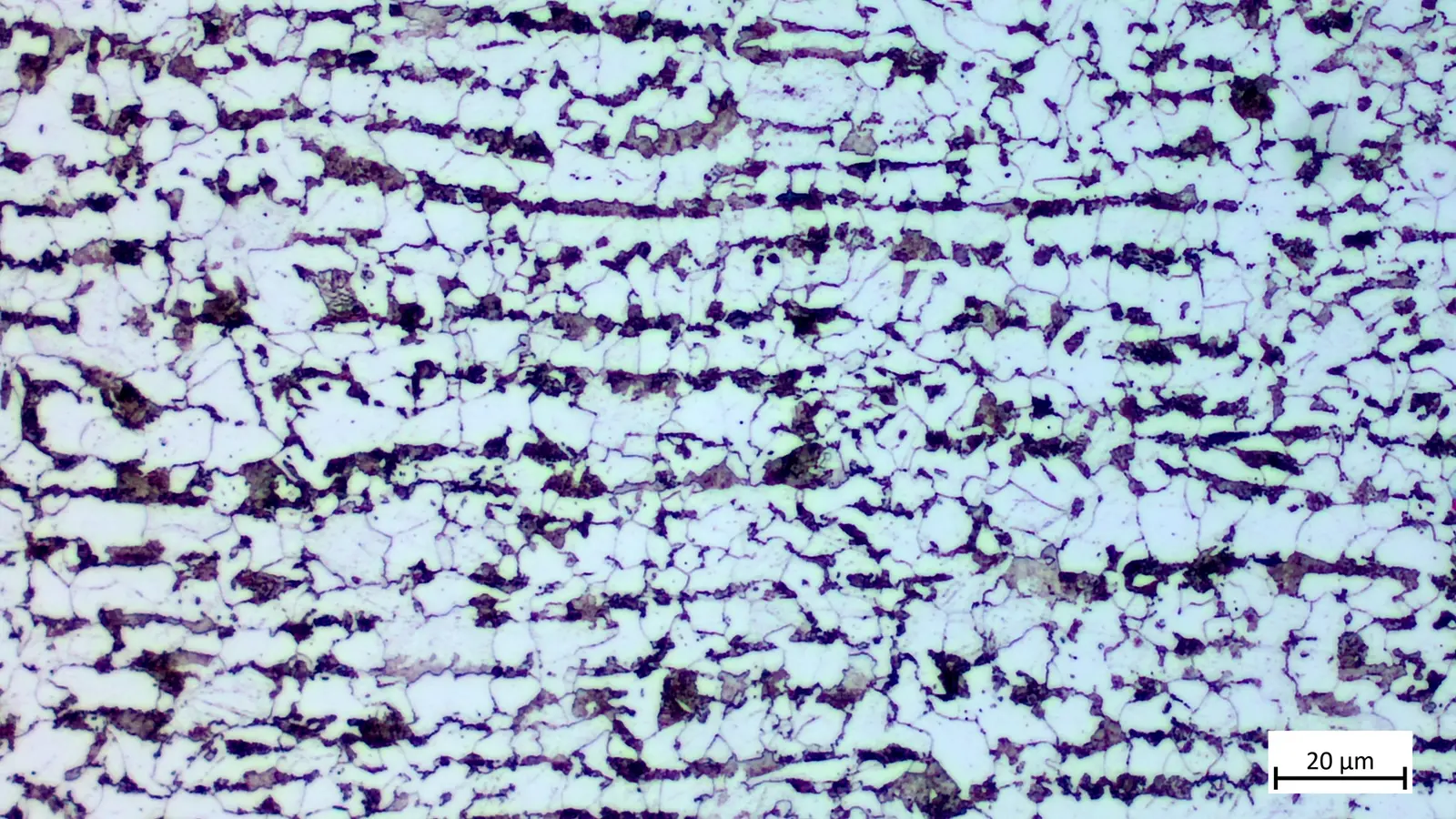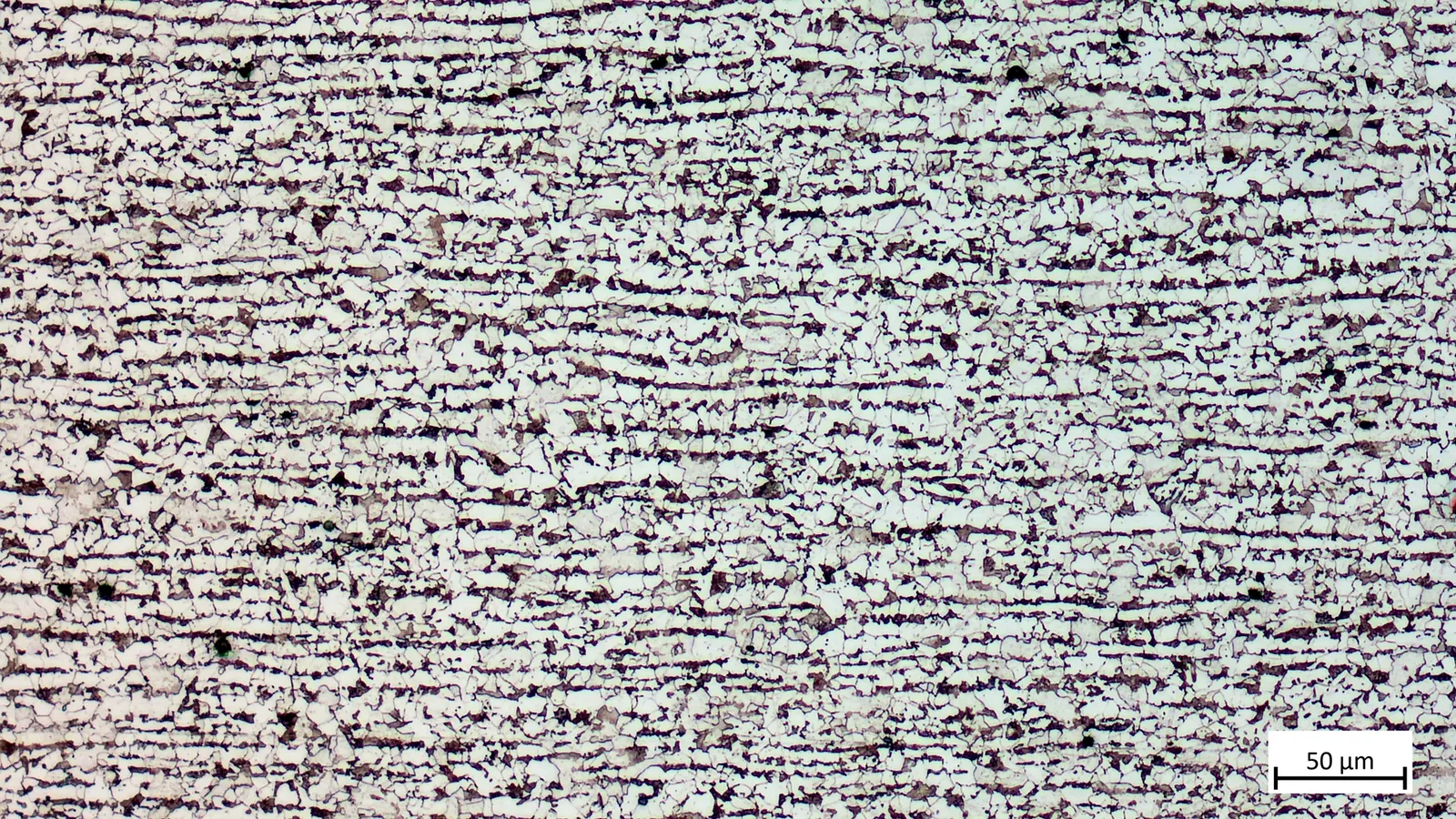 Er besitzt ein ferritisch-perlitisches Zeilengefüge.