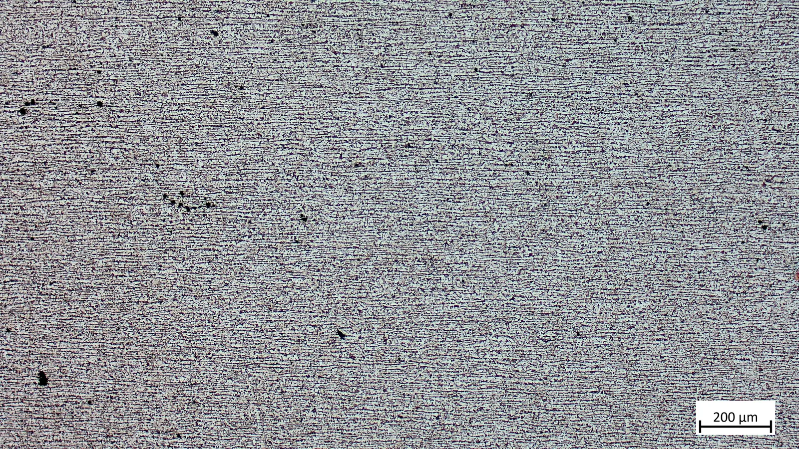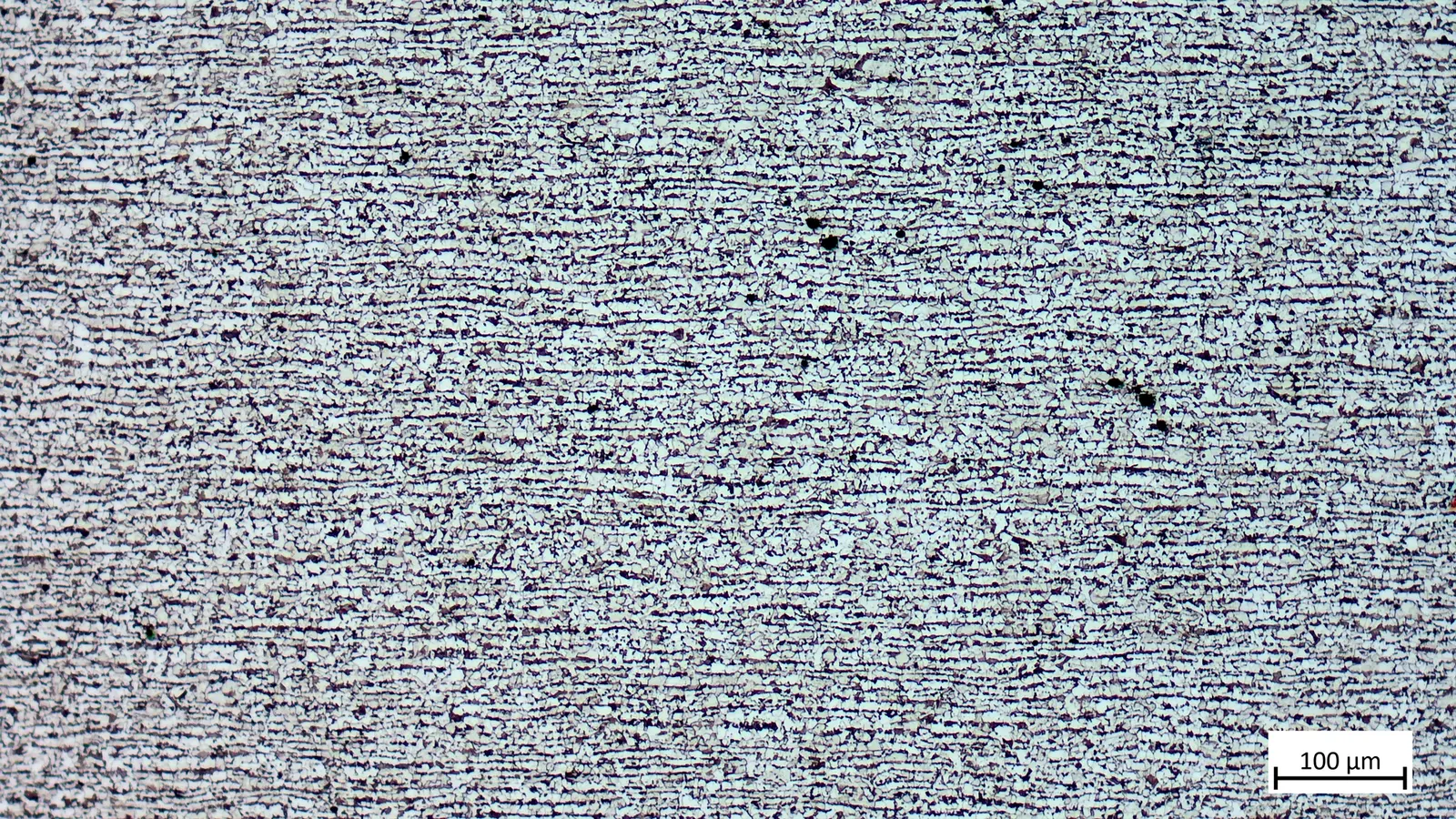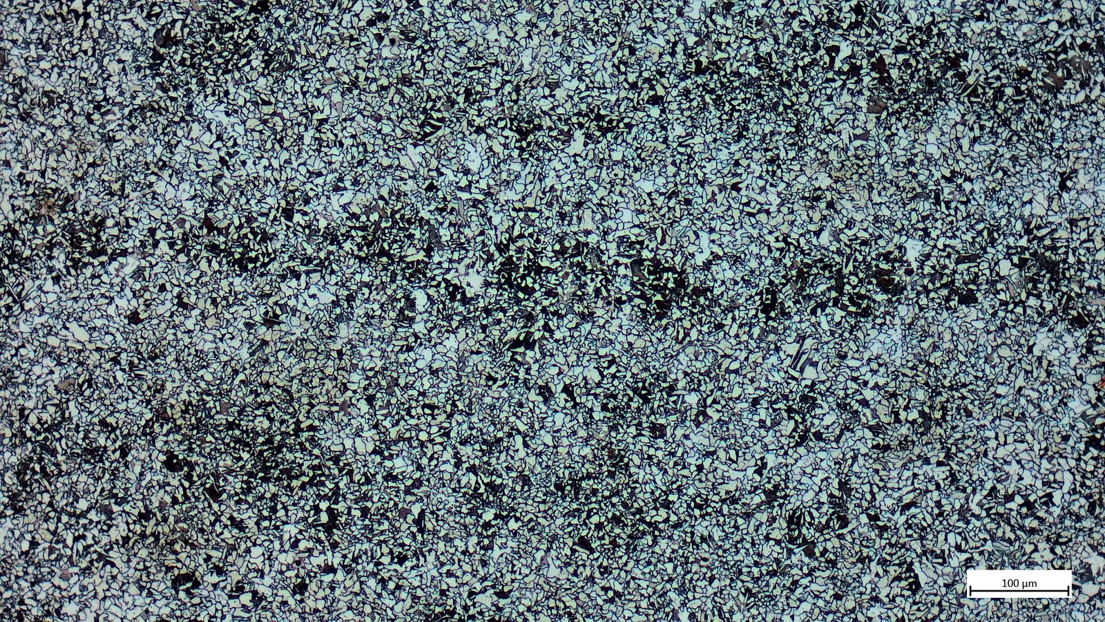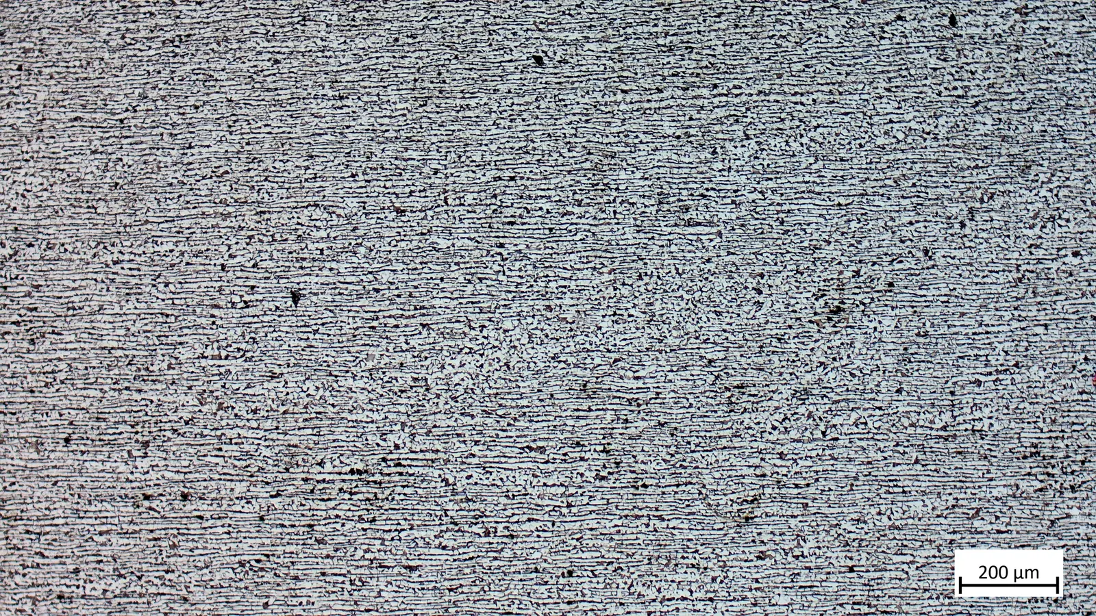 Er besitzt ein ferritisch-perlitisches Gefüge. Das Gefüge weist eine ferritisch perlitisch Zeilenanordnung auf die trotz der normalisierenden Wärmebehandlung nicht vollständig behoben werden konnte.