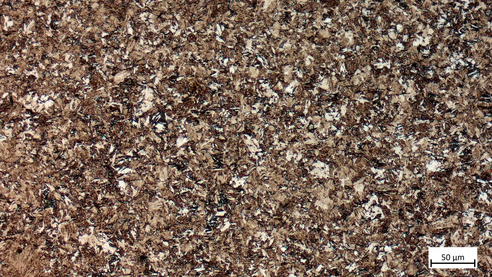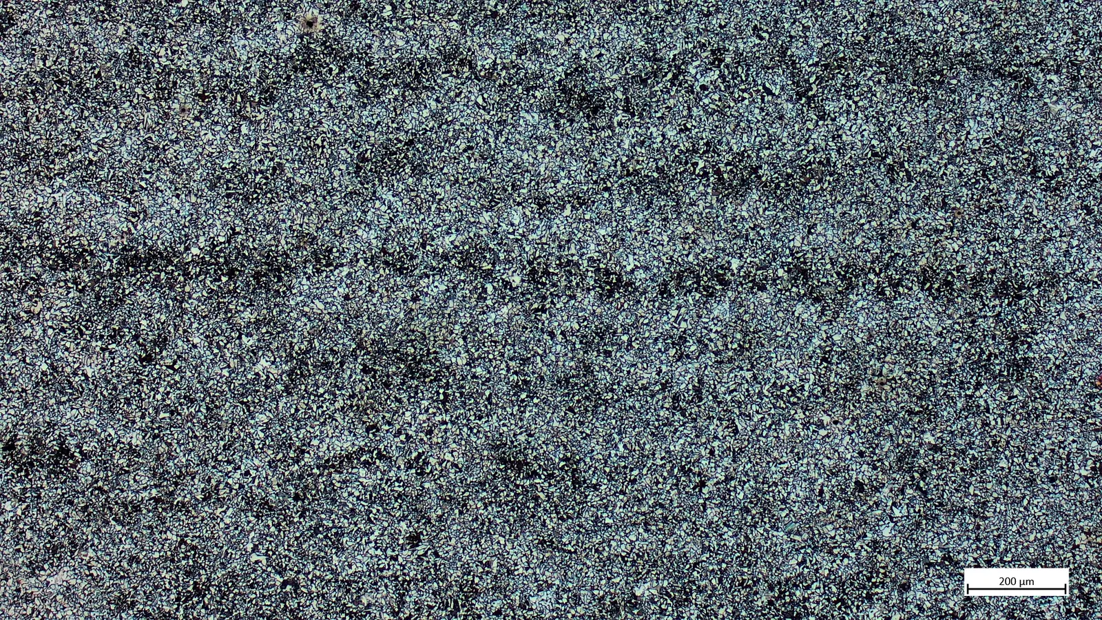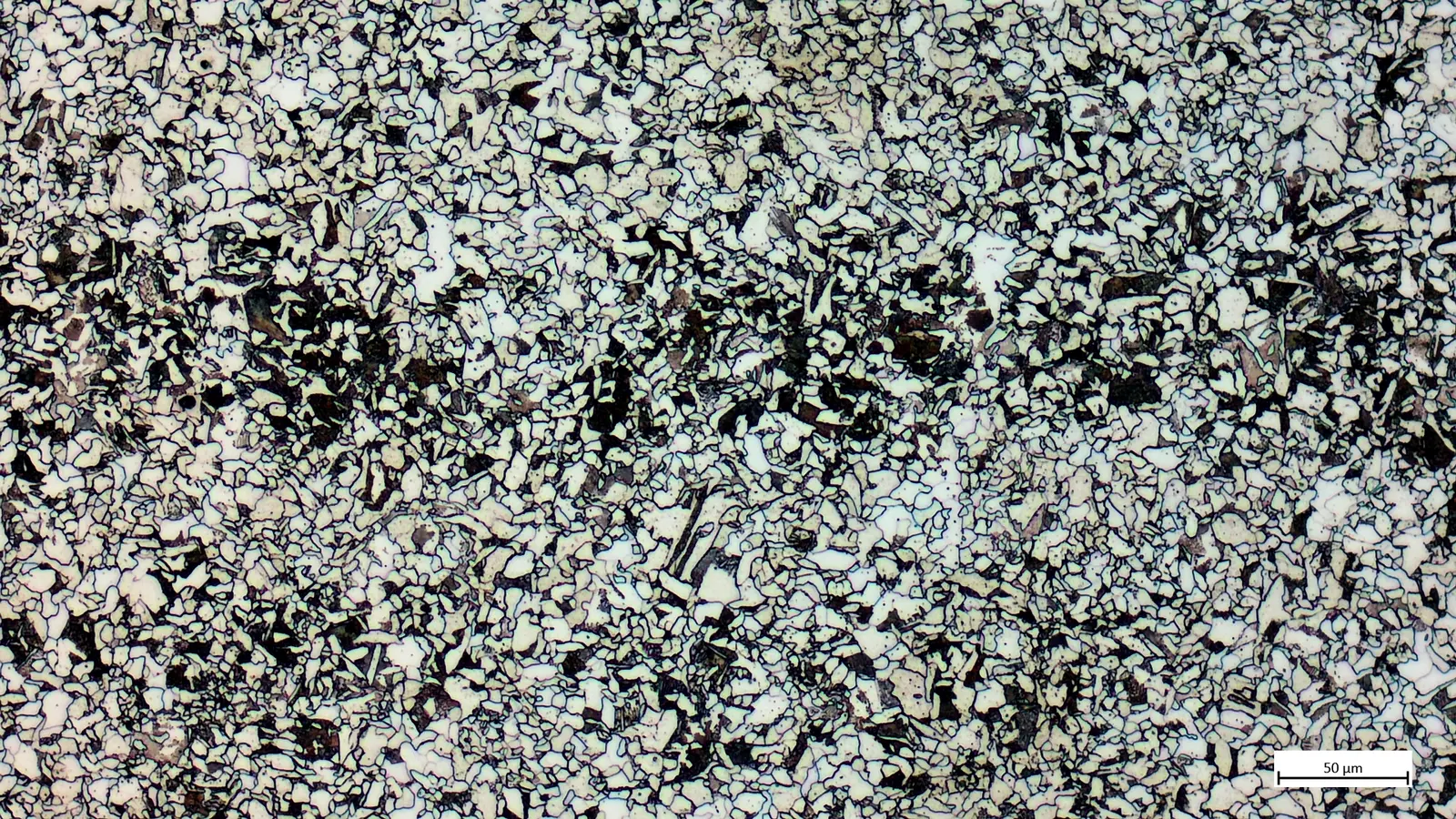 Er besitzt ein ferritisch-perlitisches Gefüge. Das Gefüge weist eine ferritisch perlitisch Zeilenanordnung auf die trotz der normalisierenden Wärmebehandlung nicht vollständig behoben werden konnte.