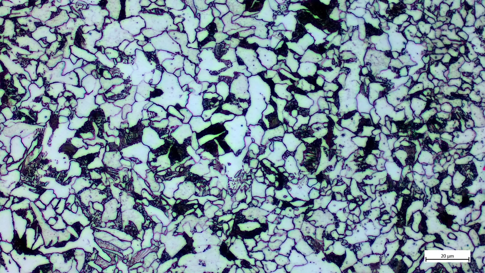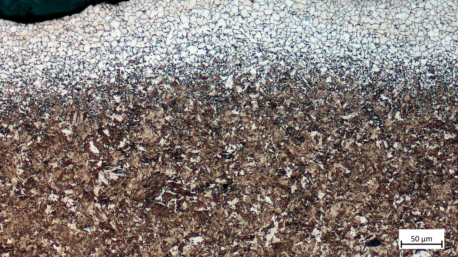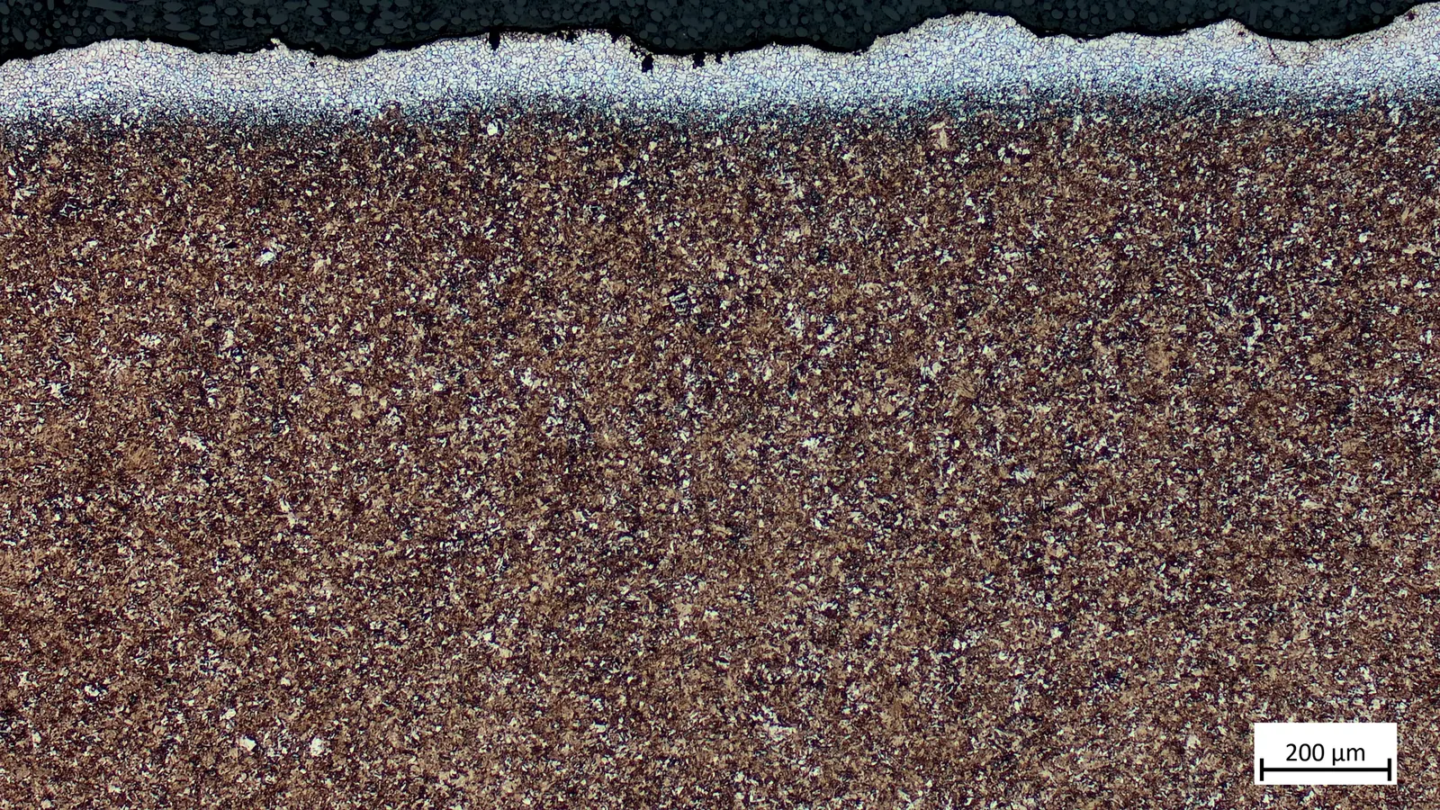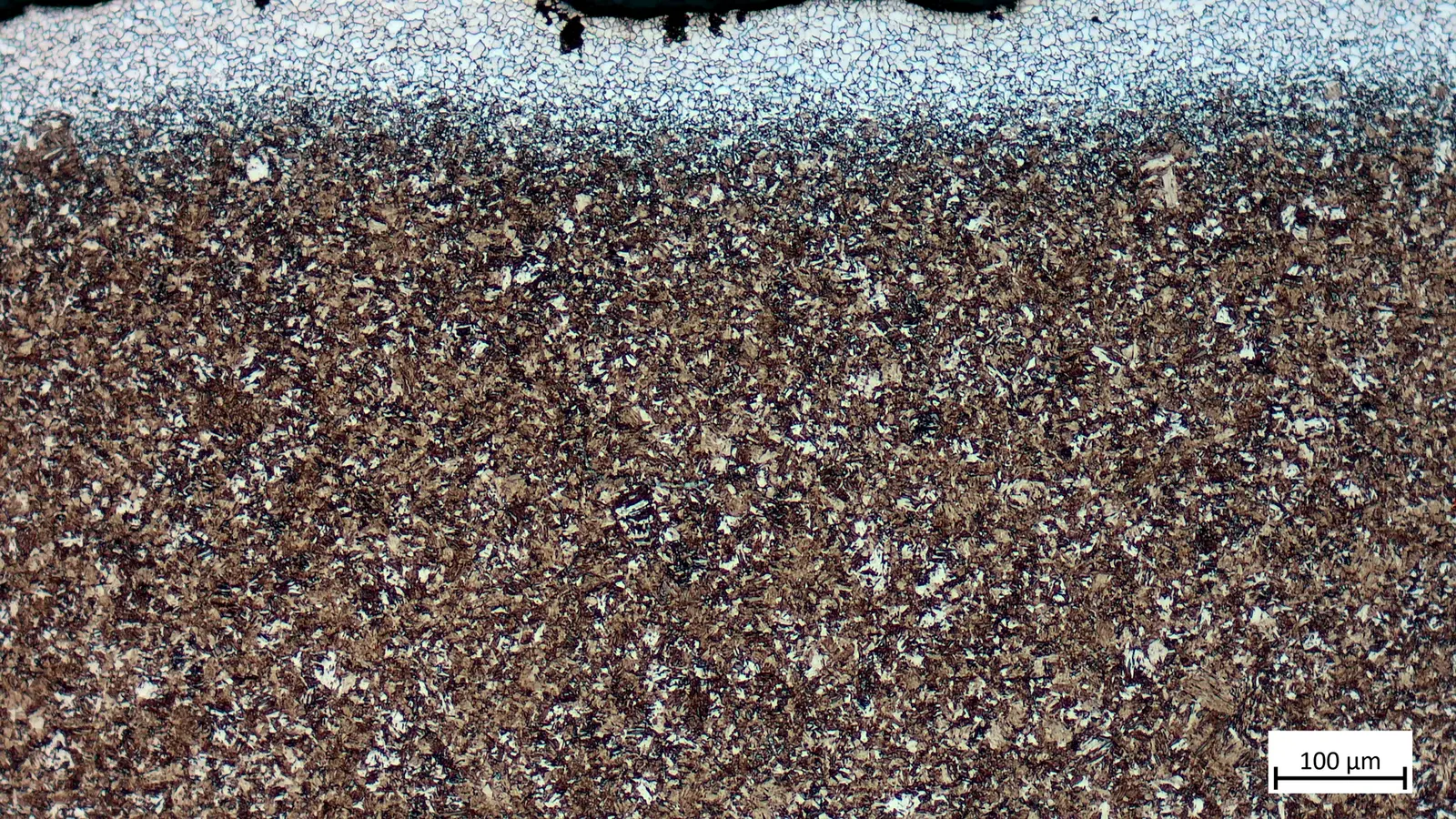 Er besitzt ein ferritisch-perlitisches Gefüge. Das Gefüge weist eine ferritisch perlitisch Zeilenanordnung auf die trotz der normalisierenden Wärmebehandlung nicht vollständig behoben werden konnte.