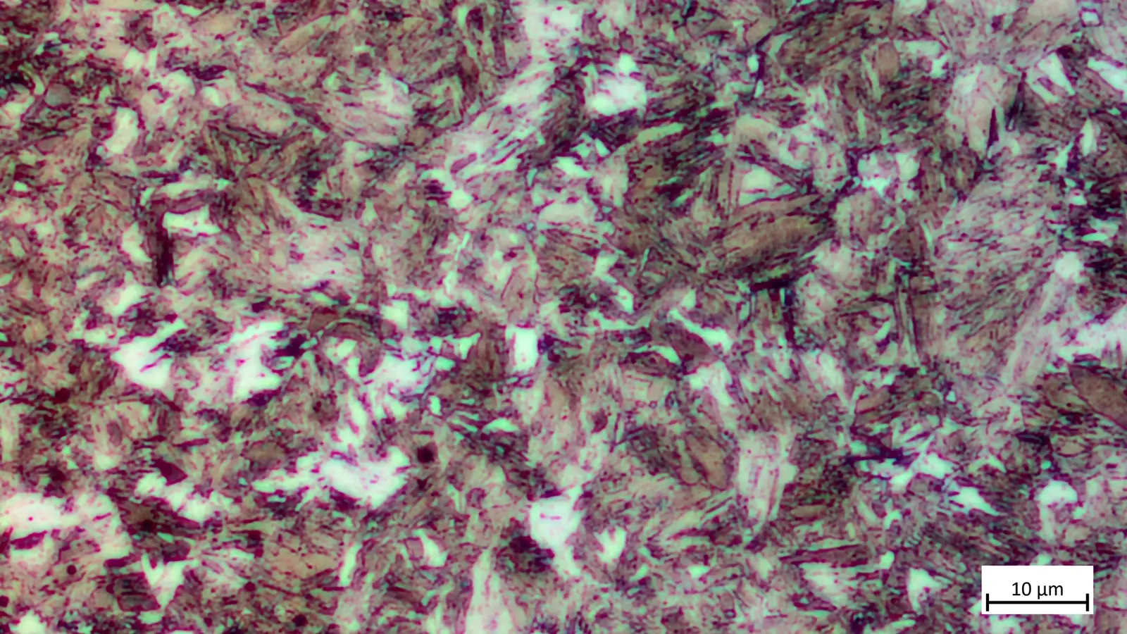 Unvollständige Normalisierung aufgrund zu niedriger Austenitisierungstemperatur. Trotz Verkleinerung der Korngrößen konnte das Ferrit-Perlit Zeilengefüge nicht homogen aufgelöst werden.