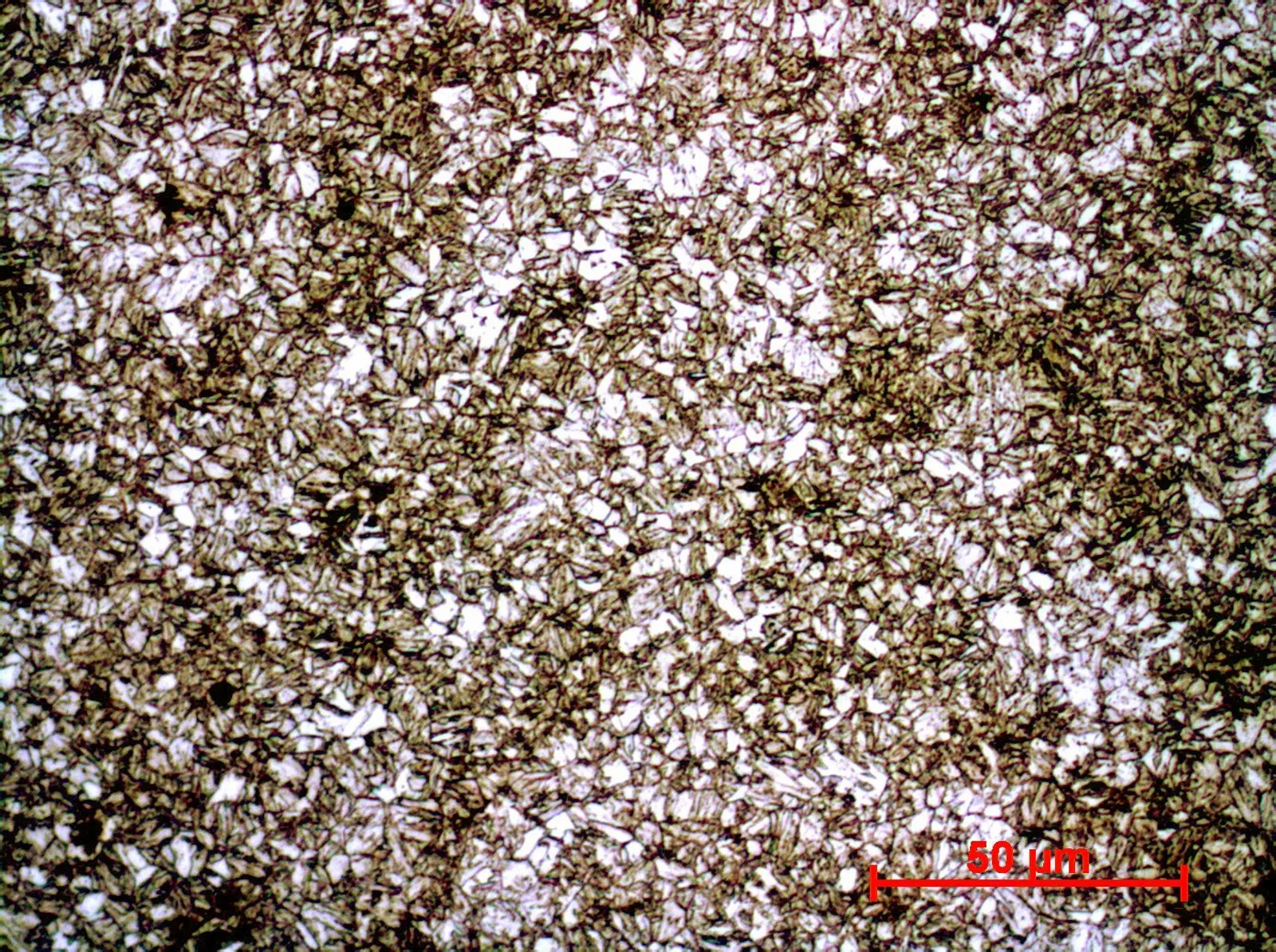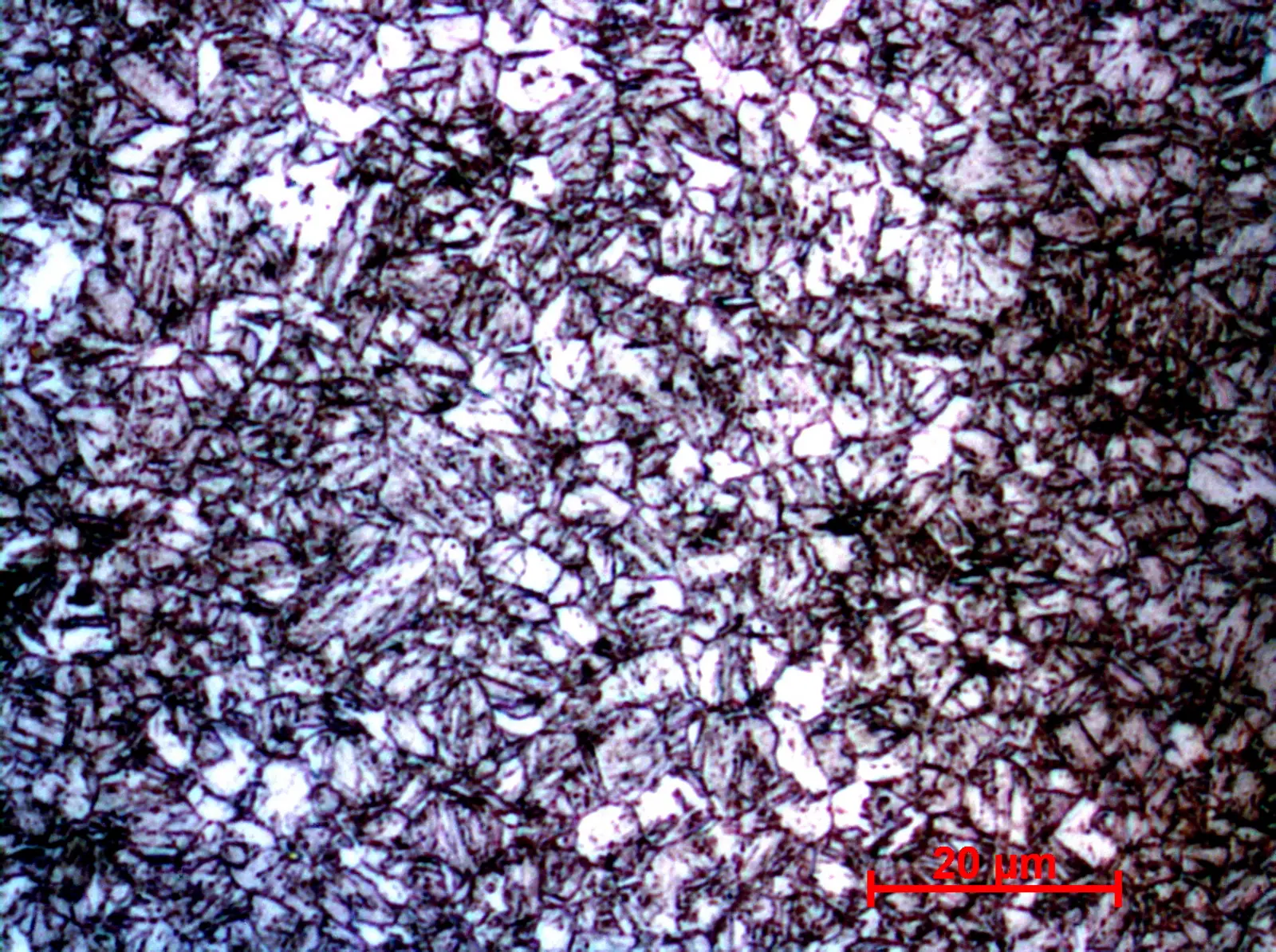 Das Gefüge weist eine ferritisch-bainitische Struktur auf mit geringen Anteilen an Perlit. Er besitzt ein Feinkorngefüge mit einer mittleren Korngröße von ca. 2µm.