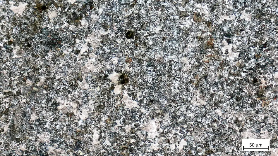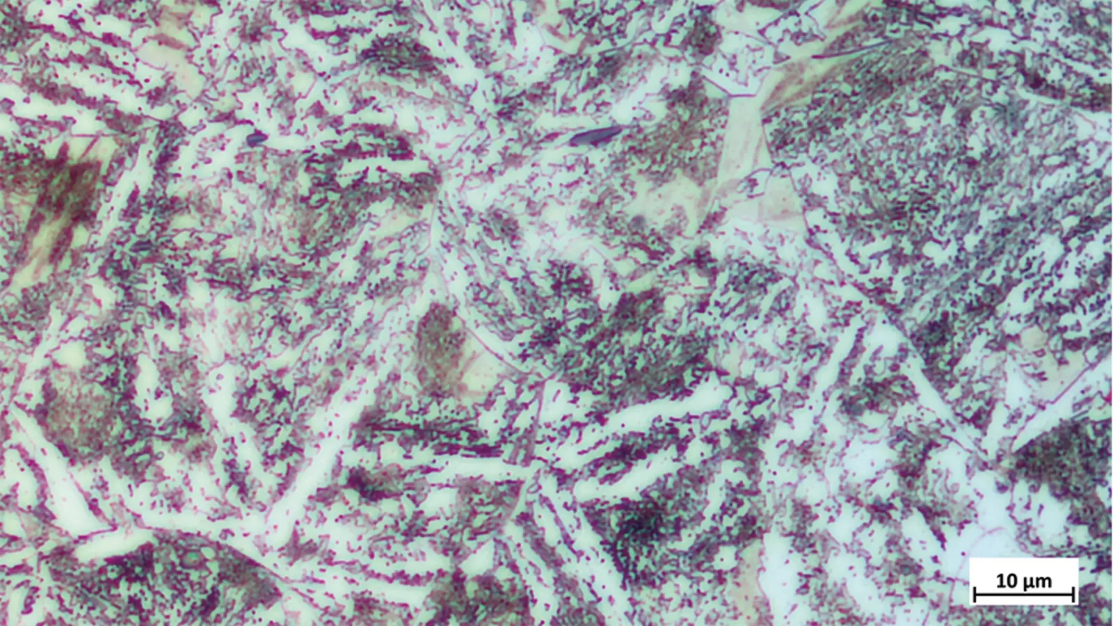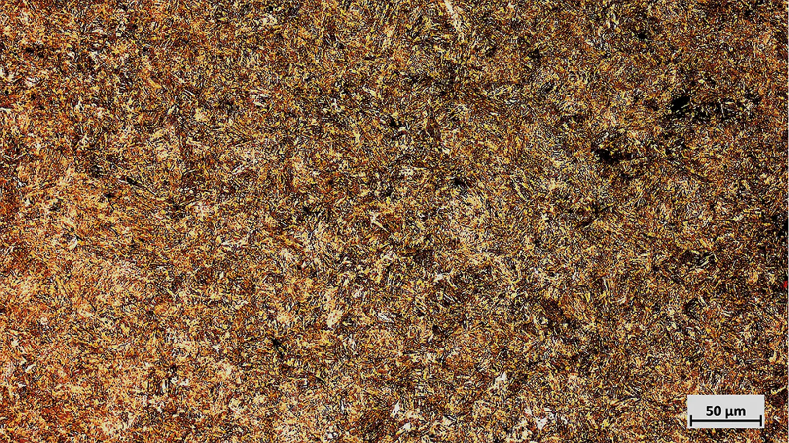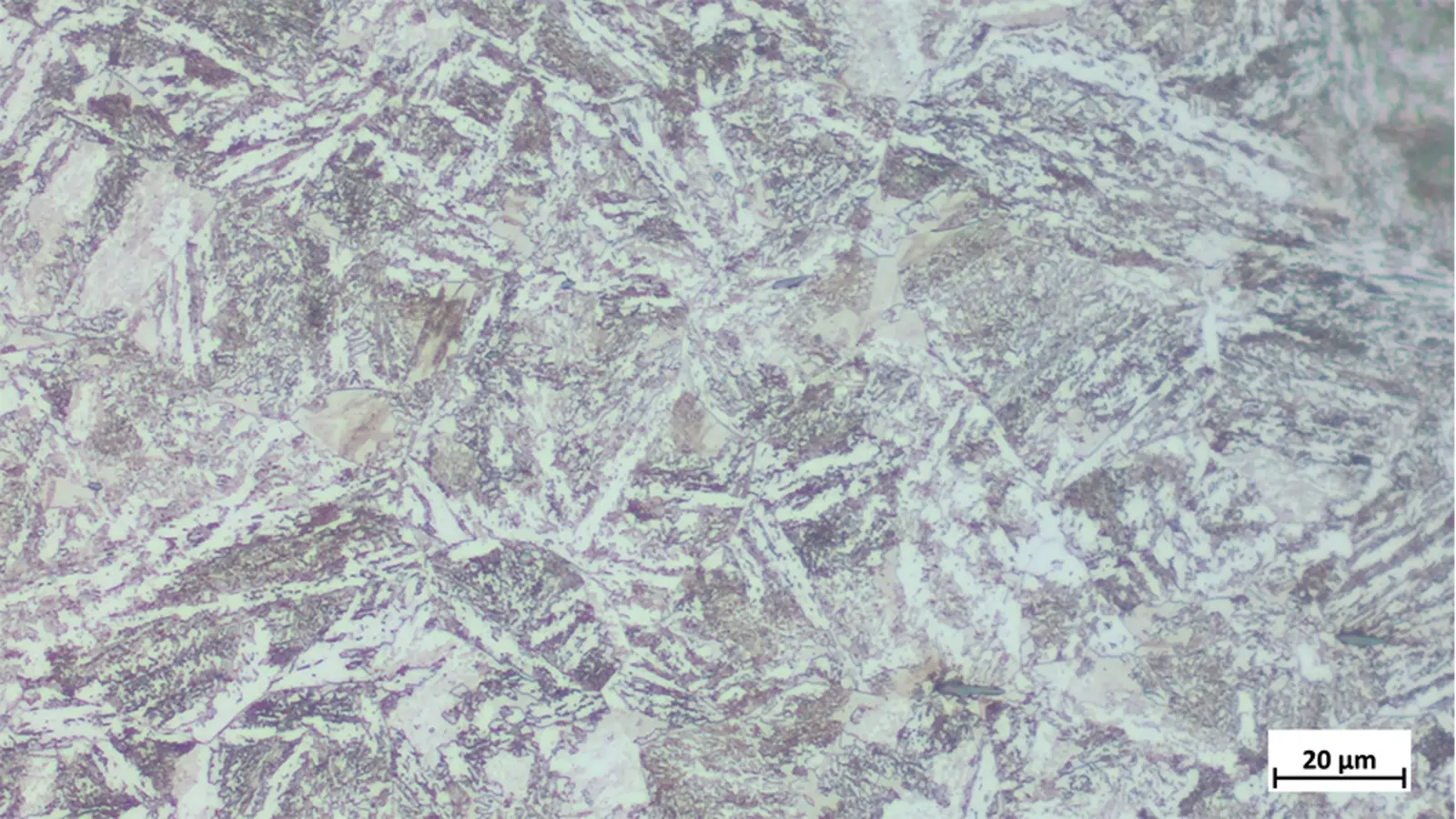 Das vorliegende Gefüge ist bainitisch mit Ferrit und feinem Perlit.