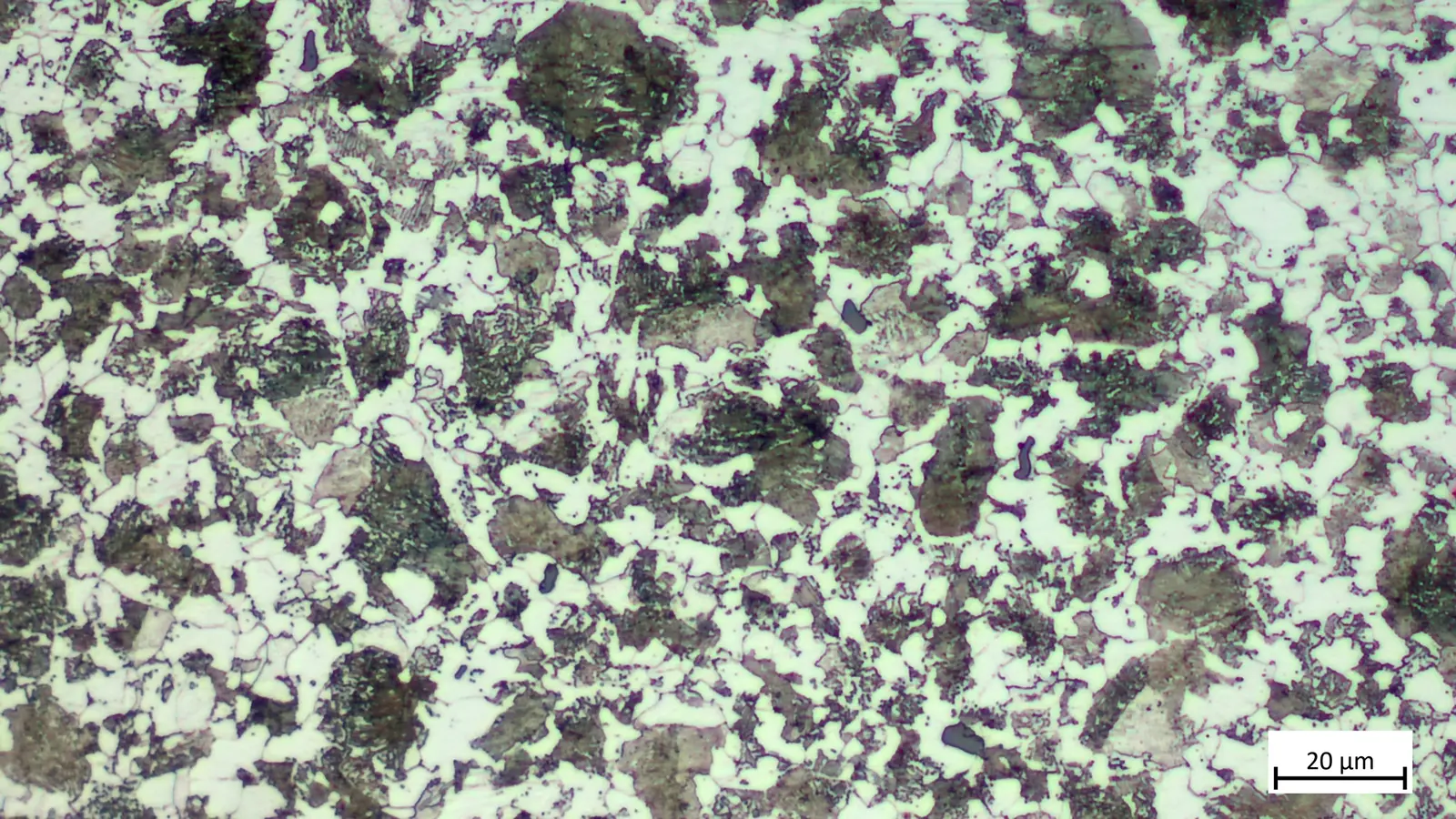 Beim 40-Mn-4 handelt es sich um ein ferritisch-, perlitisches Gefüge mit einer Verteilung von ungefähr 50/50.