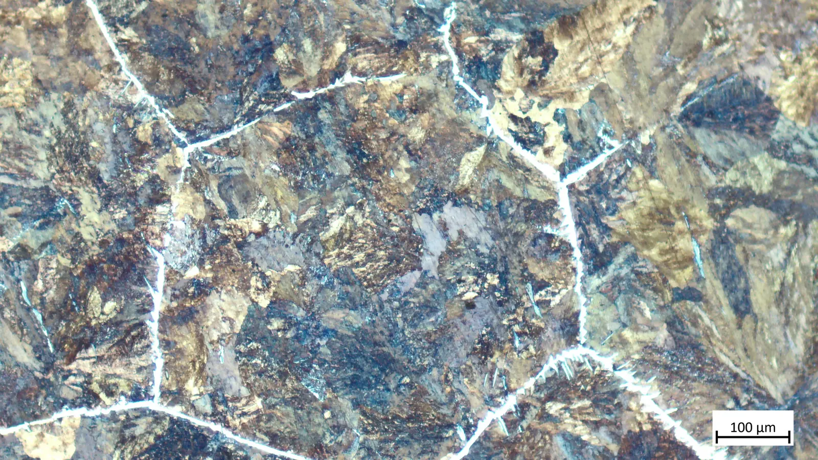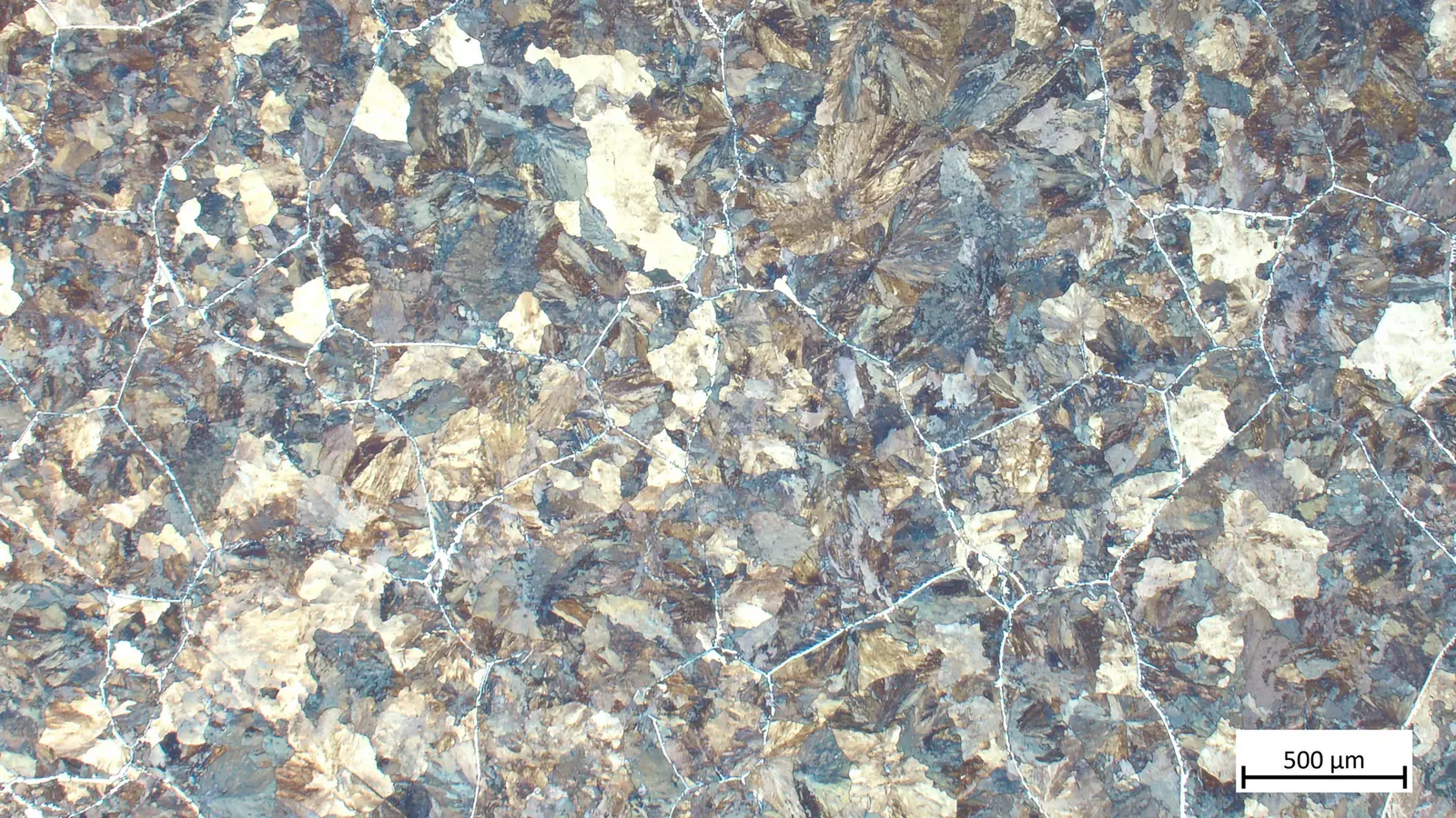 Der Werkstoff wurde bei 850 grad Celsius an der Luft normalgeglüht was große Zellen als Folge hat.