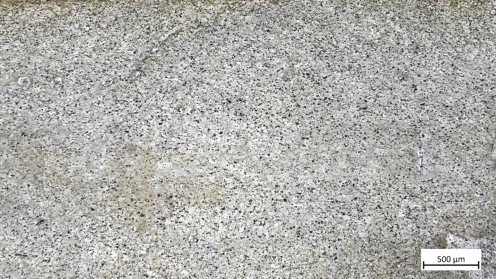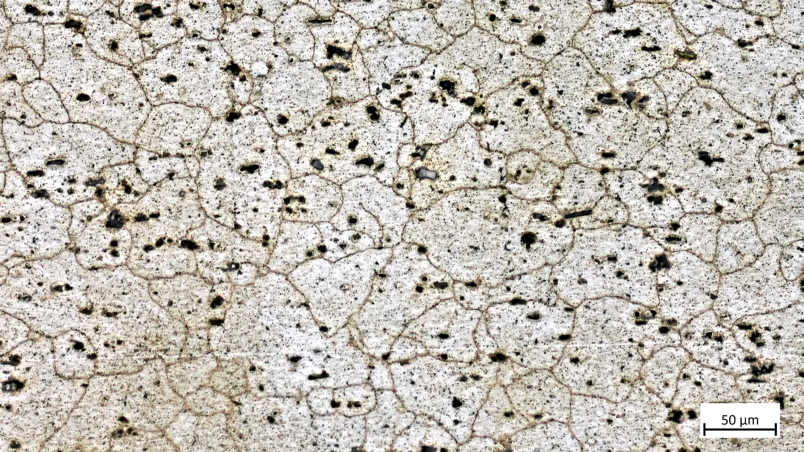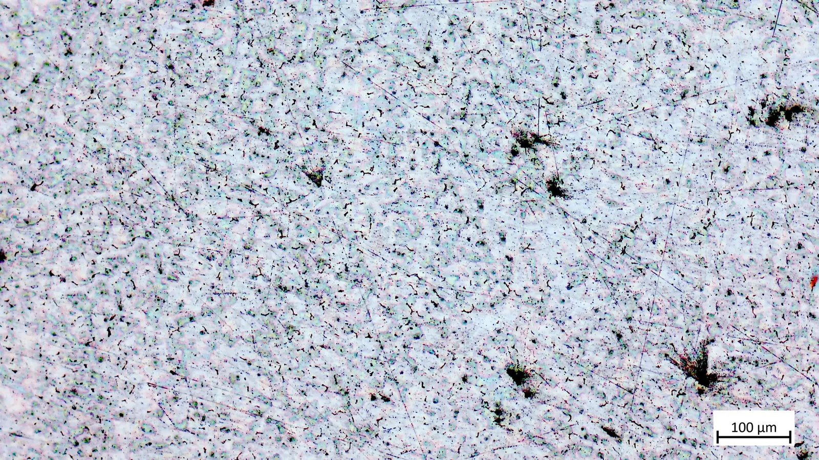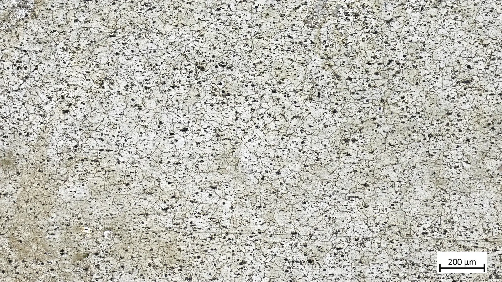 Zur Sichtbarmachung der Körner ist eine Doppelätzung mit NaOH und Kaliumpermanganat notwendig, teilweise wurde mit NaOH nachgeätzt, um die Körner weiter zu verdeutlichen.