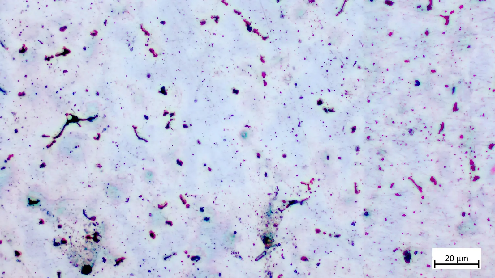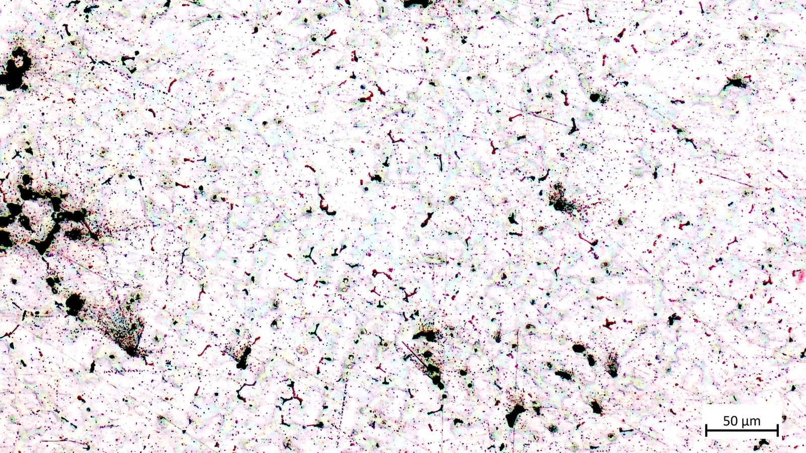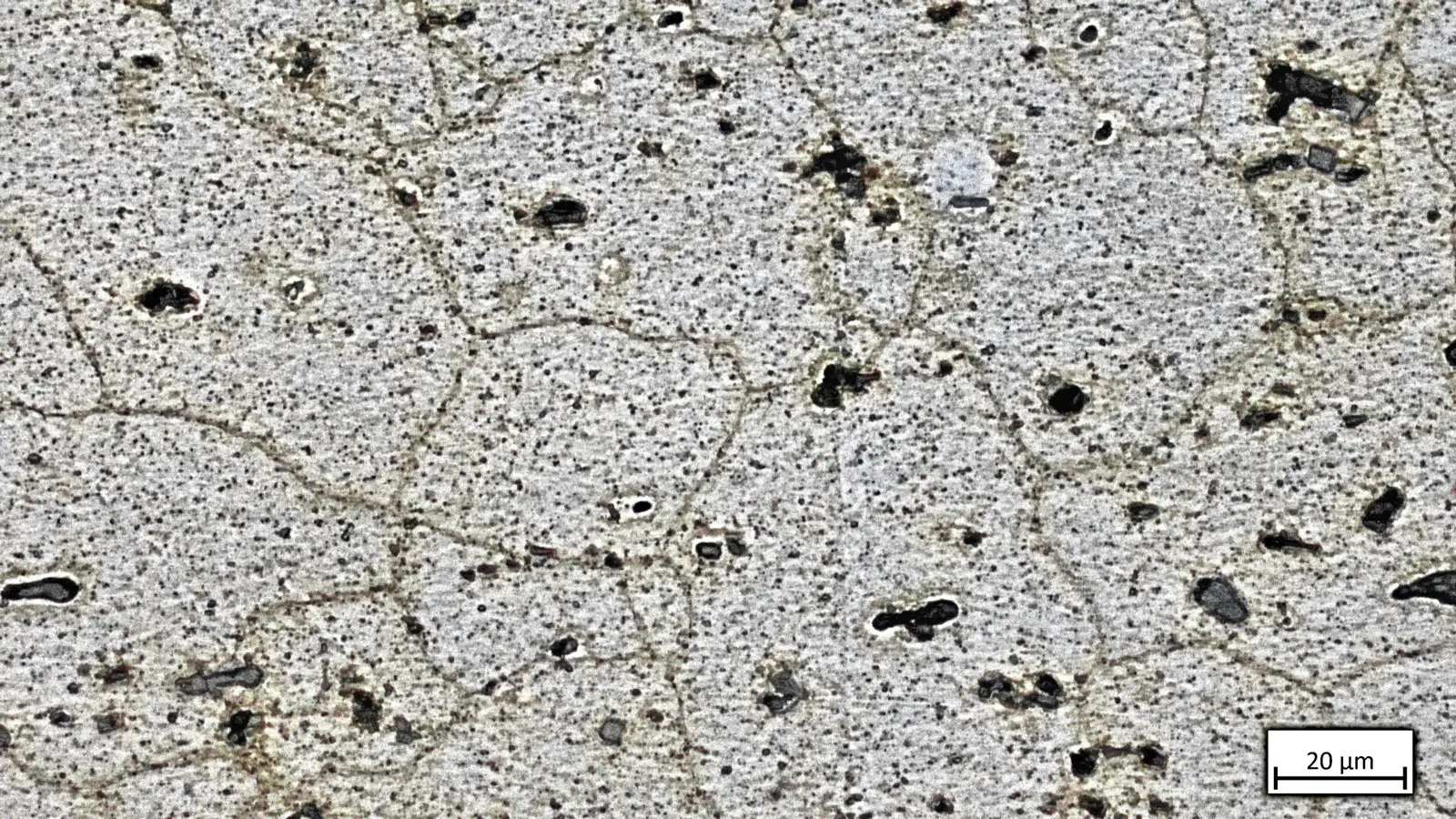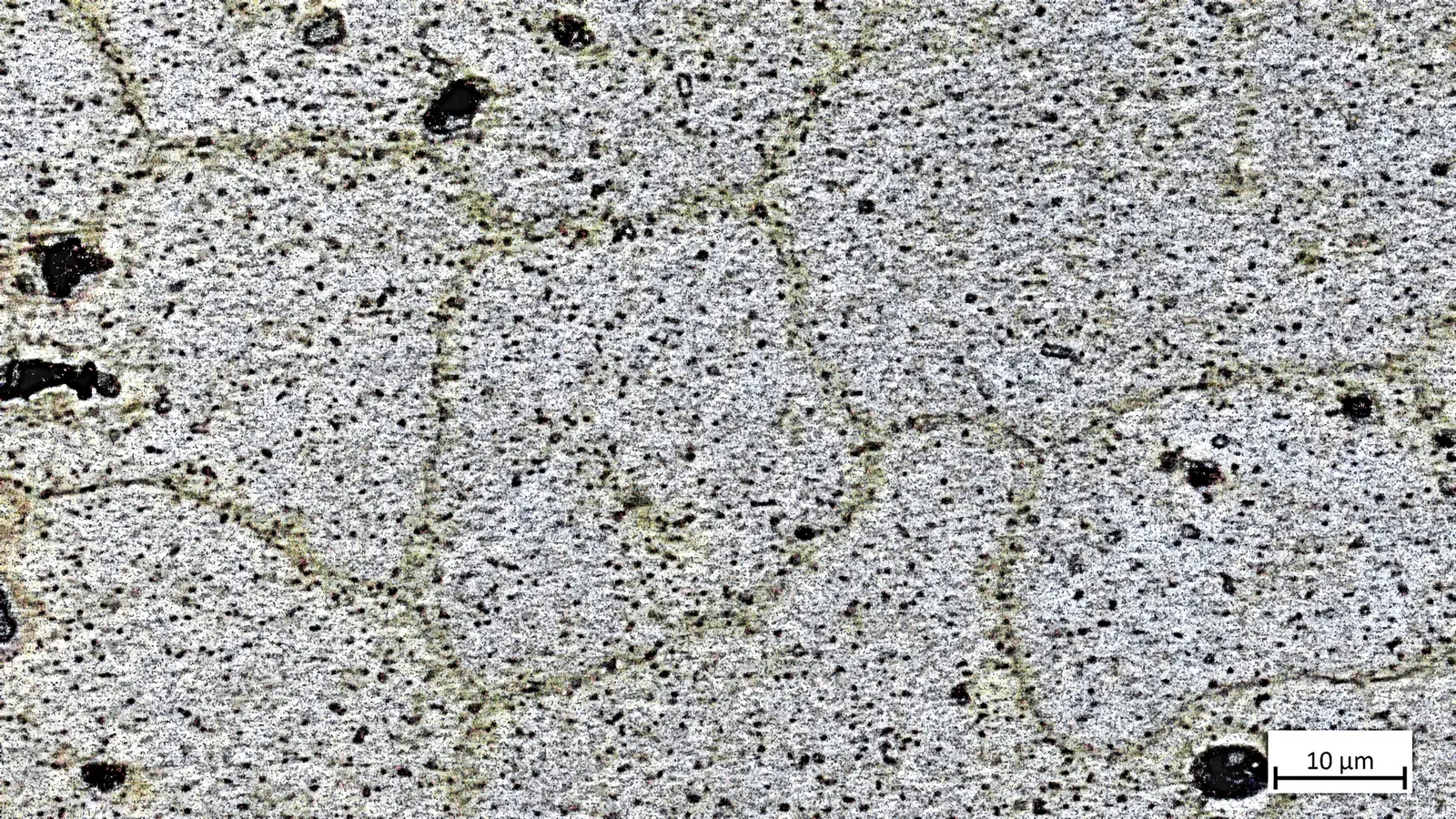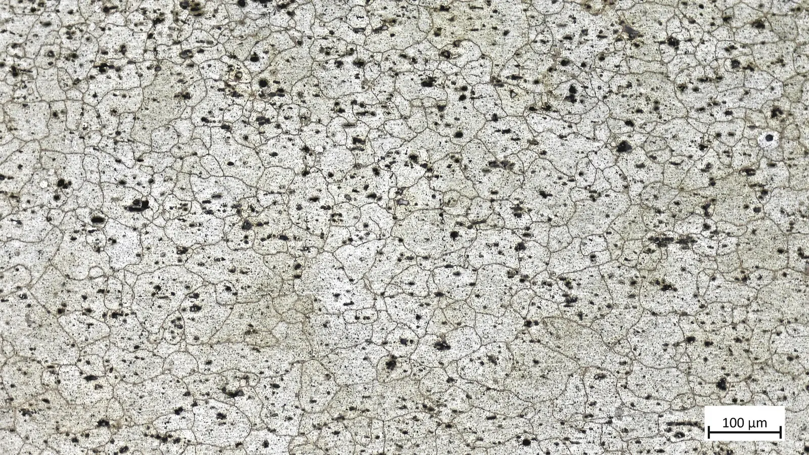 Zur Sichtbarmachung der Körner ist eine Doppelätzung mit NaOH und Kaliumpermanganat notwendig, teilweise wurde mit NaOH nachgeätzt, um die Körner weiter zu verdeutlichen.