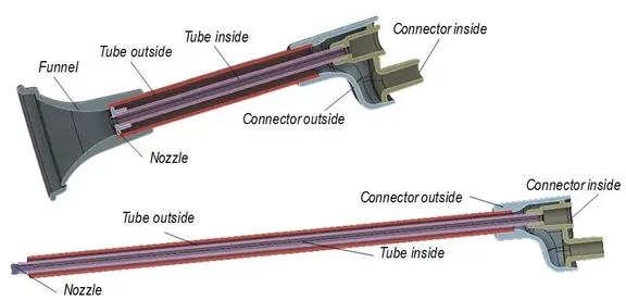 Die UTK-Solution GmbH entwickelte in der Vergangenheit ein neuartiges Jet-Lavage-System, die BlueLavage, sodass eine Trennung von Stromversorgung und Antriebskonzept von dem Absaugsystem ermöglicht werden konnte. So muss nach einer Operation nur noch das Kunststoff-Absaugsystem sortenrein entsorgt werden. Die weiteren, technisch hochwertigen Komponenten können wiederverwendet werden. Für das bisherige BlueLavage System existierten zu Projektbeginn zwei unterschiedliche Düsenarten, die Funnel-Tip-Düse für die oberflächliche Wundreinigung und die Long-Bone-Tip-Düse für die Reinigung von Röhrenknochen.
