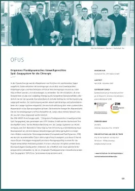 Das ZIM-KOOP-Forschungsprojekt „OFUS“ (Originäres Fluiddynamisches Umweltgerechtes Spül-Saugsystem), das gemeinsam von UTK-Solution GmbH und der Hochschule Trier durchgeführt wird, hat die Weiterentwicklung von Jet-Lavage-Systemen zur Wundreinigung zum Ziel. Besonderer Fokus liegt auf der Erforschung und Entwicklung neuer Düsengeometrien, die eine bessere Wundreinigung als bisherige Systeme ermöglichen sollen.