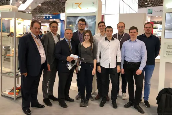 Die UTK-Solution GmbH stellte ihr BlueLavage-Spülsystem auf der MEDICA 2019 aus. Auch die ersten Prototypen der Hochschule Trier des in der Entwicklung befindlichen Ringdüsenkonzepts wurden als innovative Verbesserung in einem Messevortrag vorgestellt, und ein Ringdüsen-Prototyp konnte vom Messepublikum auf dem Messestand getestet werden. Auch das Forscherteam der Hochschule Trier präsentierte die Forschungsergebnisse, die zur Entwicklung der Prototypen beigetragen haben, am Messstand.