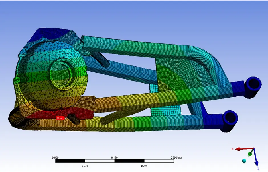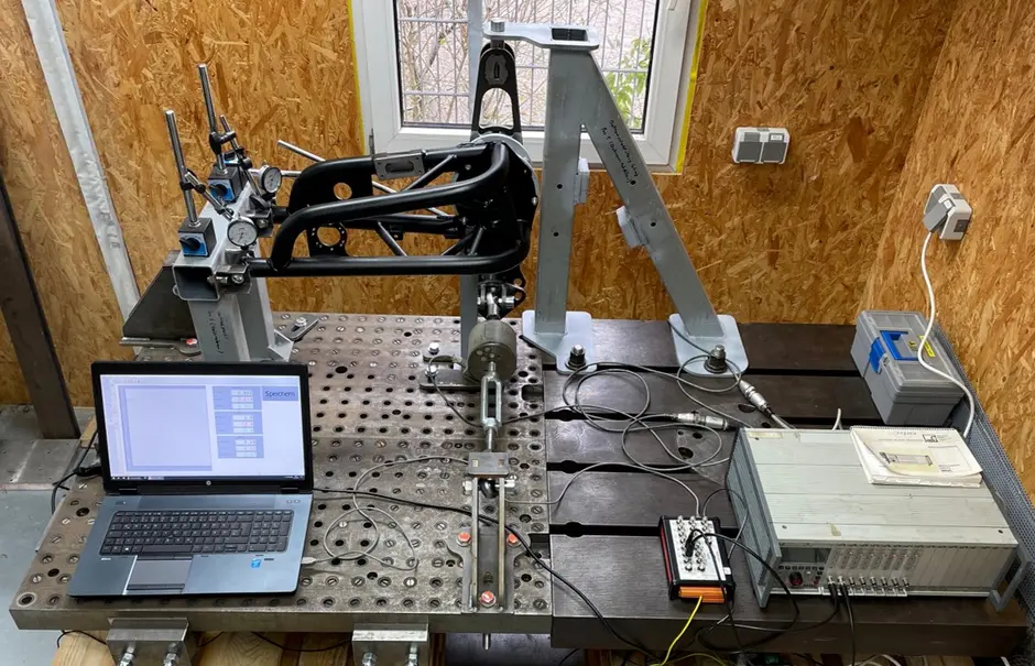 Die Triebsatzschwinge des proTRon EVOLUTION ist als Gitterrohrahmen vorgesehen und es wurde bisher nur die linke Schwinge gefertigt. In Vorgängerprojekten wurde bisher die Festigkeit und Steifigkeit nur in Finite-Elemente-Simulationen untersucht. Da die Verformungen der Schwinge große Auswirkungen auf das Fahrverhalten des Gesamtfahrzeuges haben können, ist es wichtig zu wissen, wie stark sich die Stellung des Rades unter bestimmten Belastungen verändert. In diesem Projekt wird ein Prüfstand entwickelt, mit dem diese Verformungen gemessen werden können.