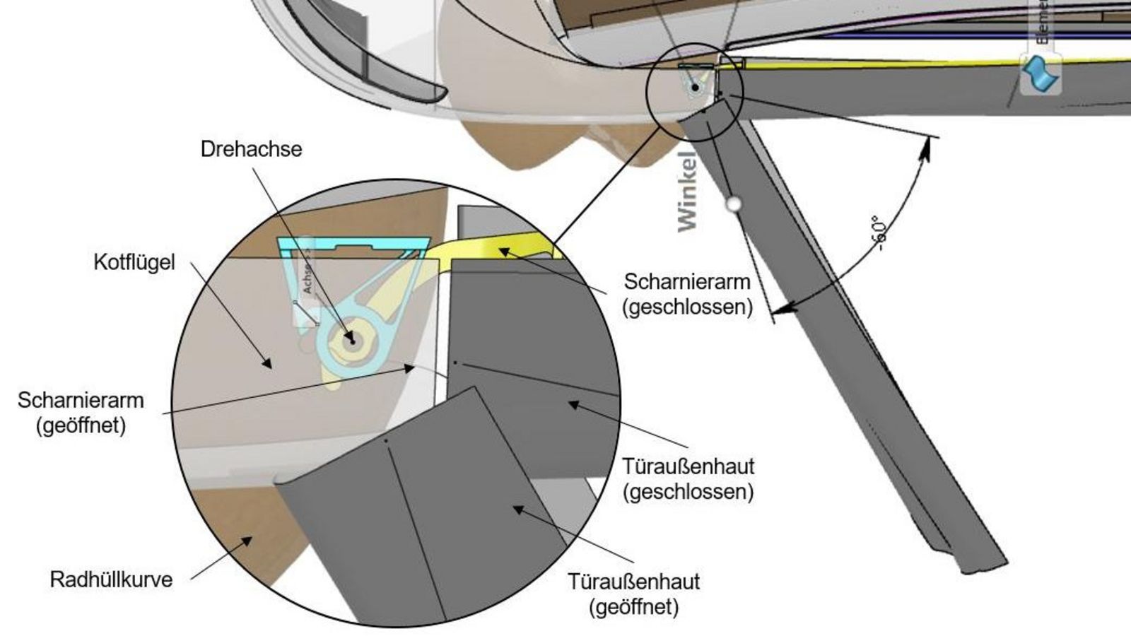 Strukturauslegung der Dachholmverkleidung und des Türrings