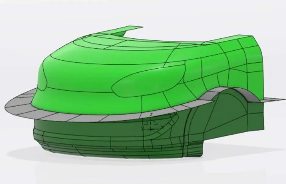 Zu Beginn wurden Fehlstellen im Shape des Frontends ausgebessert und Laminierflansche konstruiert. Um die Laminierform fertigungsgerecht zu gestalten wurde eine Trennfläche eingefügt, die für eine Teilung in Ober- und Unterschale sorgt. Nach Aufteilung der Ureolblöcke wurde der Fräsprozess für die Fertigung auf der Reichenbacher Fräsmaschine, am Gestaltungscampus, erstellt. Für den Laminiervorgang des Frontends wurden die nötigen Arbeitsschritte im Detail beschrieben.