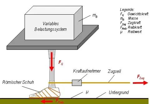 Die Römer waren zwar für ihren hervorragenden Straßenbau bekannt, doch mussten sich die Bürger und auch die Soldaten oft über schlechtere Wege oder sogar unbefestigtes Gelände bewegen. Im Zuge der Treidelversuche von römischen Binnenlastschiffen zeigte sich, dass die Zugkraft, die ein Mensch beim Treideln effektiv aufbringen kann, durch das Durchrutschen der Schuhe begrenzt war. Daher wurden die Versuche auf verschiedenen Untergründen durchgeführt (Matsch, Wiese, Befestigter Schotter, loser Schotter, Sand und Asphalt).