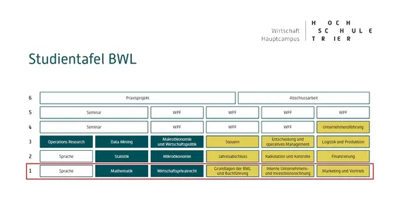 Sollten Sie in den Studiengängen Wirtschaftsinformatik oder Wirtschaftspsychologie bei uns beginnen, gelten alle folgenden Informationen analog. Bitte rufen Sie zum Abgleich Ihre entsprechende Studientafel auf unserer Webseite auf und ermitteln Sie selbstständig die Module, an denen Sie in Ihrem ersten Semester teilnehmen werden.