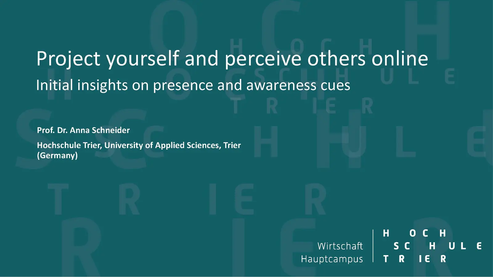 Bei Face-to-Face-Interaktionen (F2F) sind wir uns in der Regel recht gut darüber im Klaren, was unser Gegenüber von uns wahrnehmen kann. Wir steuern unsere Mimik und Körpersprache daher mitunter bewusst, und kontrollieren so, welche Informationen wir übermitteln. Bei der Online-Kommunikation können die sogenannten "Presence and Awareness Cues (PAACs)" als Ersatzsignale eingesetzt werden. Hiermit ist beispielsweise eine Einschätzung darüber möglich, ob unser Gesprächspartner im virtuellen Raum gerade überhaupt präsent und aufmerksam ist.