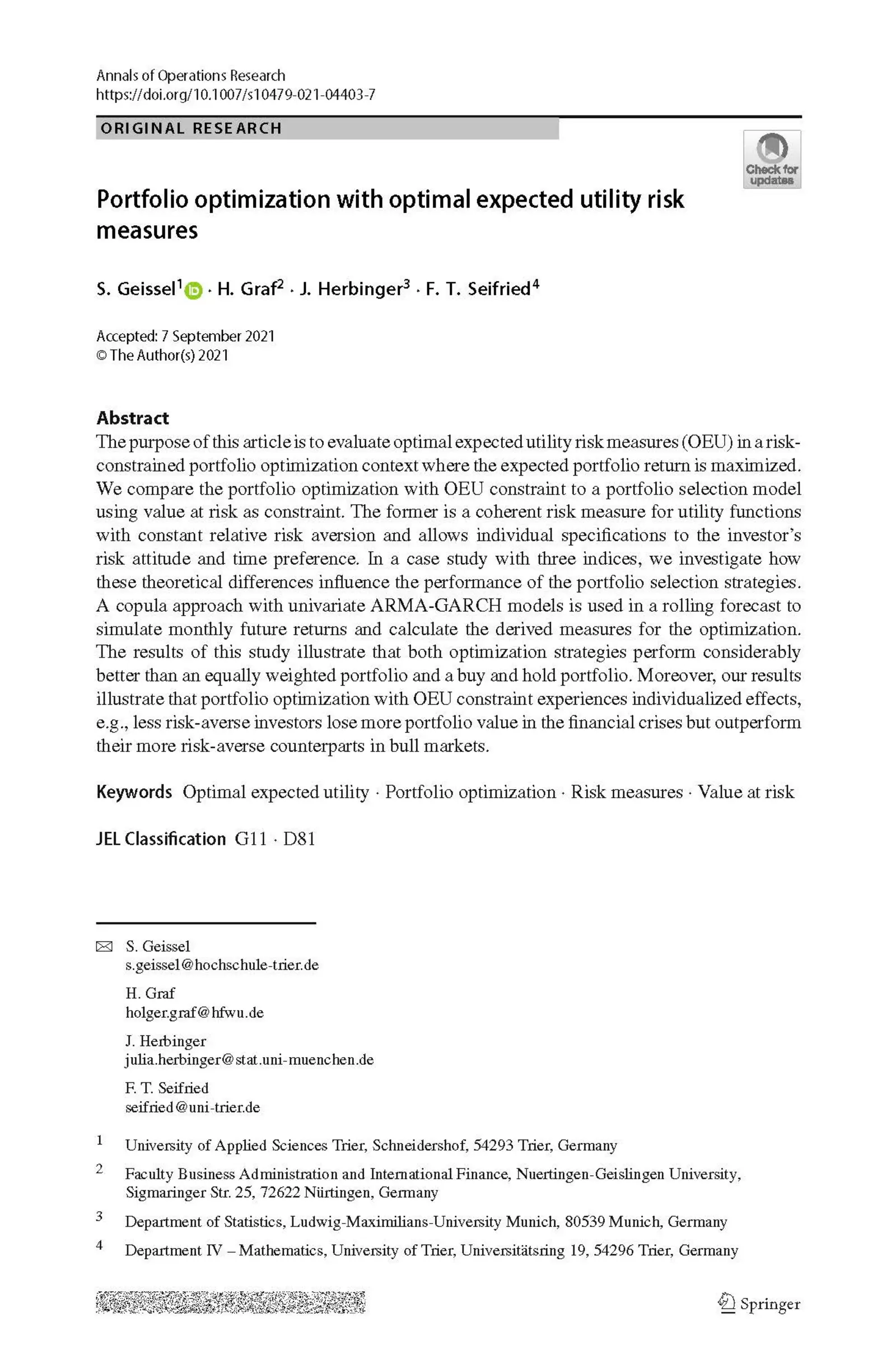 Der Artikel ist erschienen in Annals of Operations Research, das einen Impact Factor von 4,854 (2020) hat und von HCRES und ABDC als A-Journal geführt wird. Die Veröffentlichung im Open Access wurde ermöglicht durch den Publikationsfonds der Hochschule Trier.