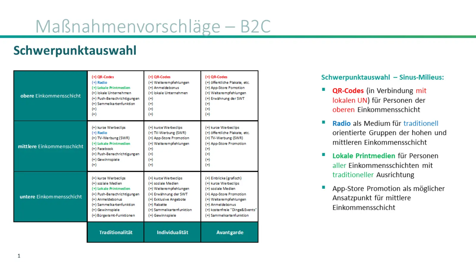 Methodisch konnten die jungen UnternehmensberaterInnen mit Hilfe des klassischen Beratungsansatzes „Sekundärdatenanalyse-Primärdatenerhebung-Konzeption“ die Stärken und Schwächen, Chancen und Risiken sowie zahlreiche Verbesserungspotenziale sowohl aus neutraler als auch aus zielgruppenspezifischer Marketing-Perspektive identifizieren und Optimierungsvorschläge entwickeln.