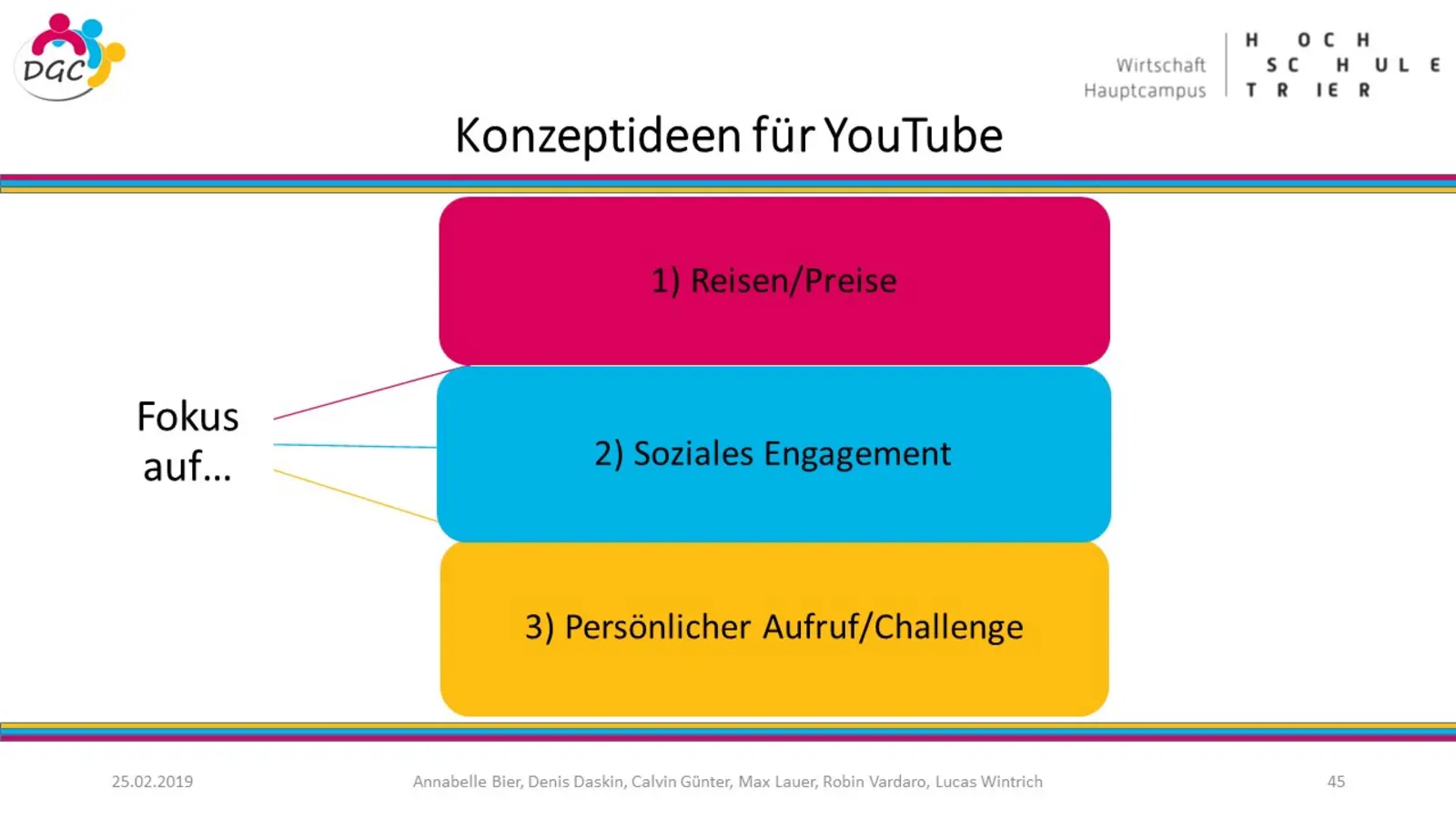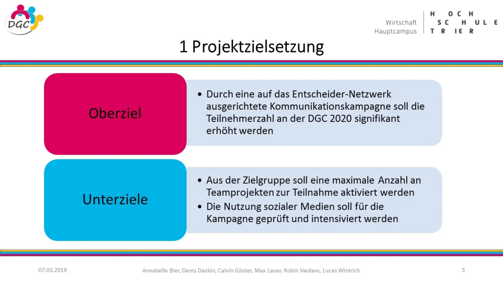 Soziales Engagement ist bedeutend für den Zusammenhalt und die Gestaltung unserer Gesellschaft. Jede Generation kann sozial aktiv werden und einen guten Zweck unterstützen. Doch wie werden vor allem die jüngeren Altersgruppen auf soziale Projekte aufmerksam und zur Teilnahme animiert? Mit dieser Thematik beschäftigte sich eine Gruppe von Studierenden unter der Leitung von Prof. Dr. Udo Burchard in Zusammenarbeit mit Andreas Laschke. Das Team unterstützte den Bundeswettbewerb „Doing Good Challenge“ (DGC), welcher einer vom Rotary und Rotaract ins Leben gerufener und seit 2016 alle zwei Jahre stattfindender bundesweiter Wettbewerb ist, der Jugendliche zu sozialem Engagement und Teamgeist anregen soll. Ziel des Projektes war es, durch entsprechende Analysen und abgeleitete Marketing-Maßnahmen die Bekanntheit des Wettbewerbs zu steigern und dadurch die Teilnahme von Schülerteams an dem Wettbewerb signifikant zu erhöhen.
