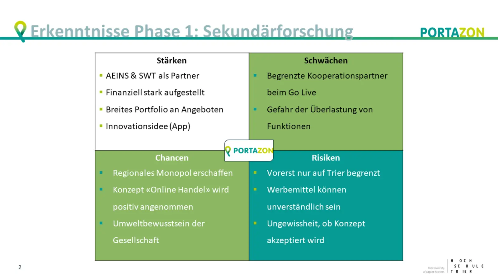 Die Projektergebnisse und -durchführung wurden von den Verantwortlichen der Portazon GmbH als sehr professionell und besonders wertvoll für die weitere Einführung und Entwicklung der App gewürdigt.