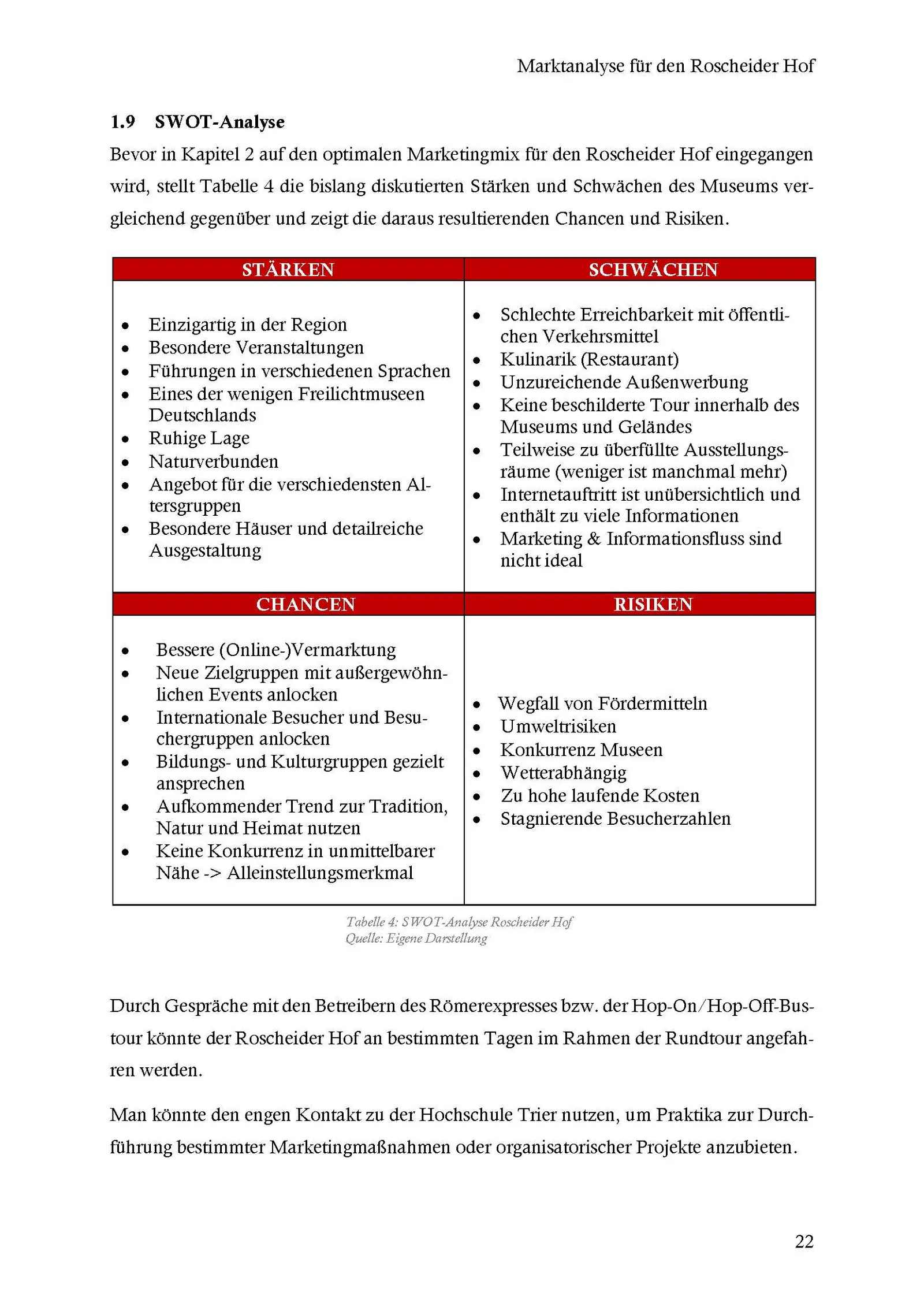 Im Rahmen des Seminars Tourismusmarketing unter der Leitung von Dr. Kathrin Jaszus und Prof. Dr. Helge Rieder arbeiteten 21 Studenten mit dem Roscheider Hof zusammen. Der Roscheider Hof ist ein im Jahre 1976 gegründetes Volkskunde- und Freilichtmuseum im Stadtteil Konz-Roscheid in der Nähe von Trier. Ziel dieser praxisorientierten Kooperation war es ein Marketingkonzept zu entwickeln und auszuarbeiten, um die Bekanntheit und somit auch die Besucherzahlen des Museums zu steigern.Die Studierenden erarbeiteten dazu eine umfassende Markt- und Wettbewerbsanalyse. Die Analysen ergaben wichtige und hilfreiche Erkenntnisse in Bezug auf die optimale Ausrichtung des Marketing-Mixes speziell der Produkt,- Preis,- Kommunikations- und Distributionspolitik. Des Weiteren wurde ein Konzept zur besseren Darstellung der Webseiten des Roscheider Hofes präsentiert sowie eine effiziente Nutzung der Social-Media-Kanäle YouTube, Facebook, Instagram und TripAdvisor vorgestellt.