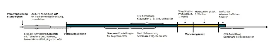Für einen reibungslosen Verlauf des Studiums ist es wichtig, einige Termine und Fristen zu kennen. Wir haben die wichtigsten Termine und Fristen auf dieser Seite für Sie zusammengefasst. Weitere Details zu den jeweiligen Punkten finden Sie auch in den jeweiligen Kategorien, insbesondere unter "Wie geht was?".