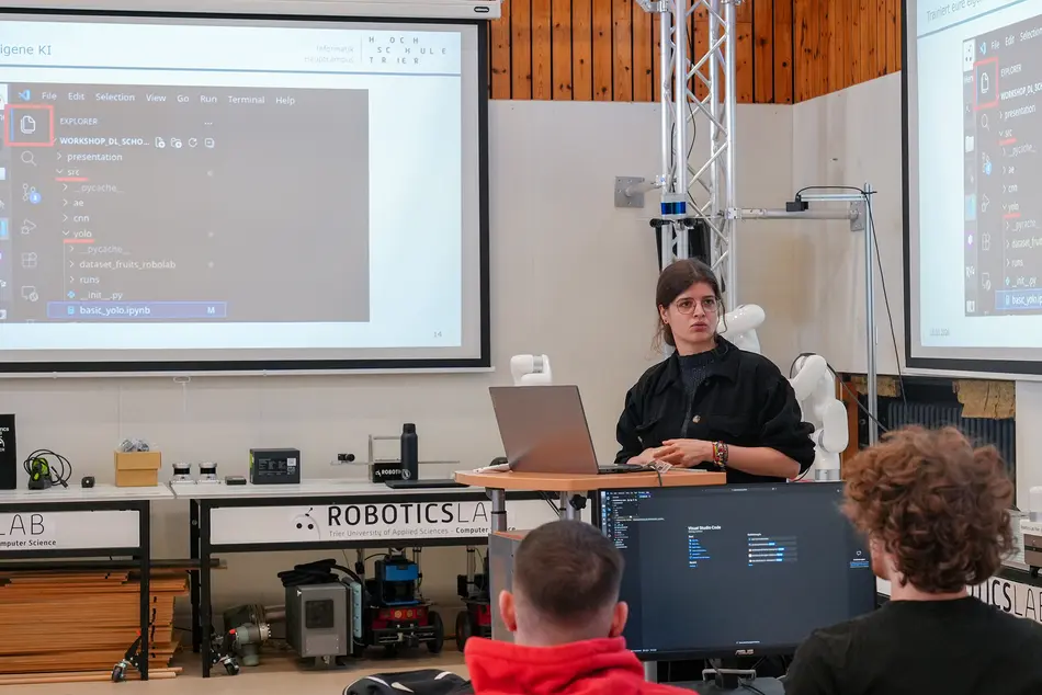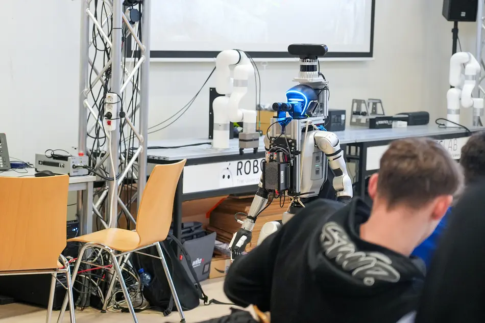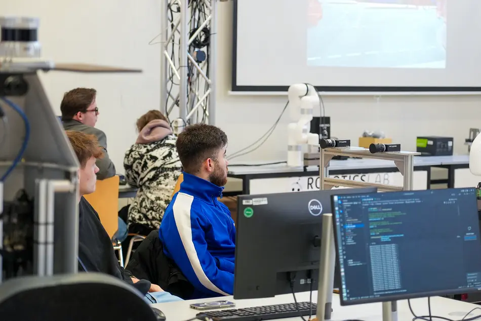 Den Auftakt machte das Labor für Robotik und kognitive Systeme mit dem Workshop „Robotik – Methoden der Wahrnehmung“. Die Jugendlichen lernten, wie Roboter ihre Umgebung wahrnehmen, Informationen verarbeiten und Entscheidungen treffen. Dabei konnten sie die Roboter aus nächster Nähe erleben und die Welt einmal aus deren Perspektive sehen. Geleitet wurde der Workshop von Christoph Zinnen, Lea Dewald und Janik Kurtz.