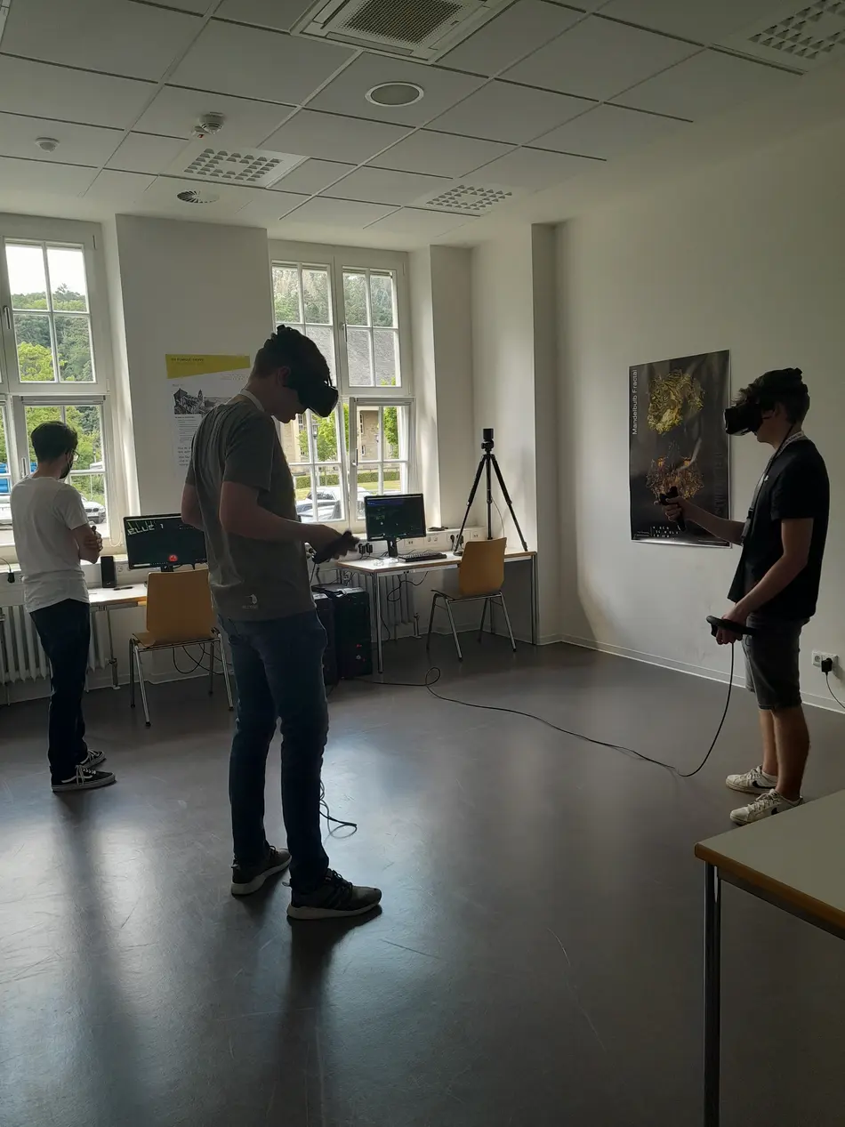 Die Teilnehmer*innen wurden an den beiden Veranstaltungstagen intensiv begleitet und konnten viele interessante Einblicke in die Informatik sammeln und sich an zahlreichen interaktiven Stationen – im Robotiklabor, im VR-Labor, im Motion-Capturing-Labor sowie beim Fahrsimulator – selbst ausprobieren. Ergänzt wurden diese praxisnahen Eindrücke durch Informationen zum Studienangebot im Fachbereich Informatik, durch eine Live-Vorlesung zum Thema „Einführung in die Programmierung“, durch eine ausführliche Campusführung sowie durch eine gemeinsame Übernachtung in der Trierer Jugendherberge, um zahlreiche Einblicke rund um den Hochschulalltag zu erhalten und die eigene Studienwahl zu reflektieren.