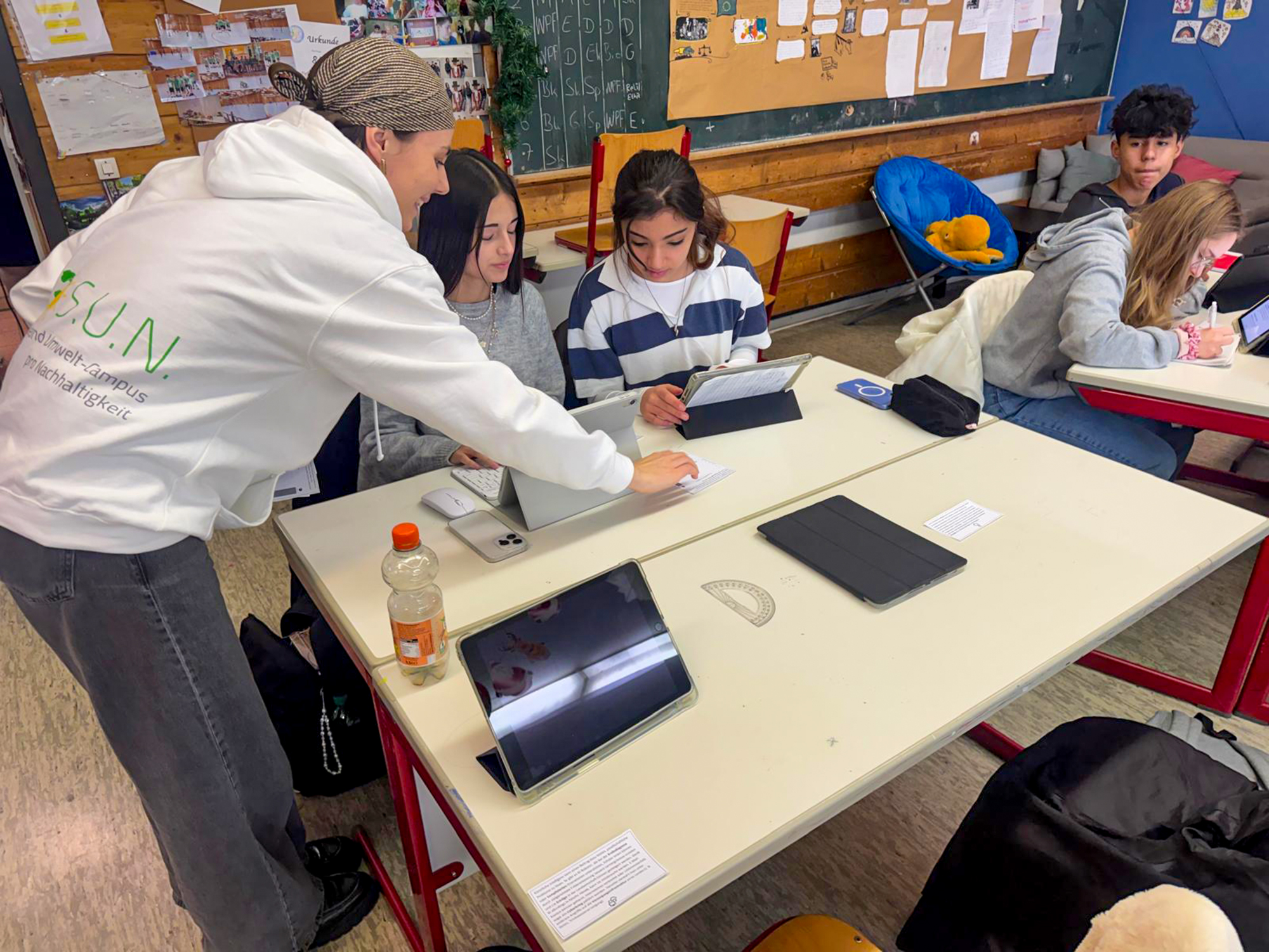 Im Rahmen des S.U.N.-Projekts, unter der Leitung von Prof. Dr. Rick besuchten sie fünf Schulen und hielten elf Doppelstunden zu den Themen Ernährung, Fast Fashion, Ozeane sowie Künstliche Intelligenz und Nachhaltigkeit.