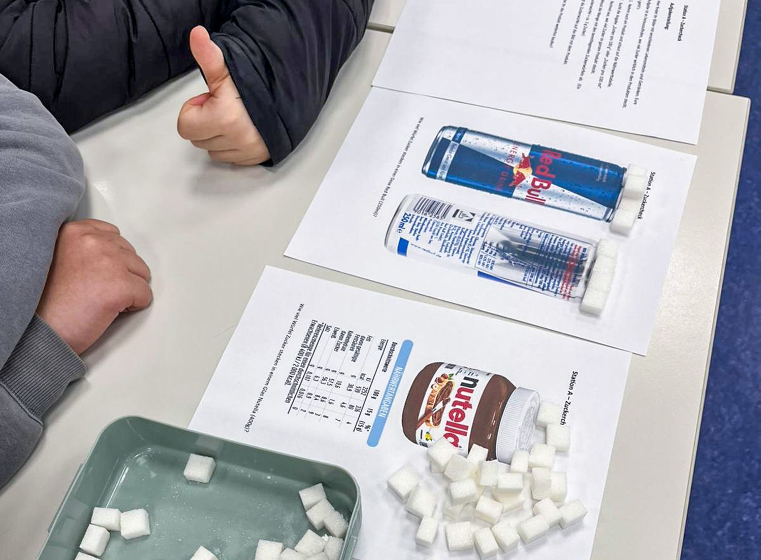 Den Anfang machte das Thema Ernährung: An interaktiven Stationen entschlüsselten Sechstklässlerinnen und Sechstklässler Zutatenlisten, berechneten den Zuckergehalt von Alltagsprodukten und entwickelten Ideen gegen Lebensmittelverschwendung. Dass Ketchup mehr Zucker enthält als mancher Schokoriegel, sorgte für große Augen – und den Vorsatz, künftig genauer hinzuschauen. Beim Thema Fast Fashion schlüpften die Jugendlichen in die Rollen von Näherinnen, Klimaaktivistinnen und Unternehmerinnen und erarbeiteten gemeinsam, wer in der globalen Modeindustrie von günstigen Preisen wirklich profitiert – und wer nicht.