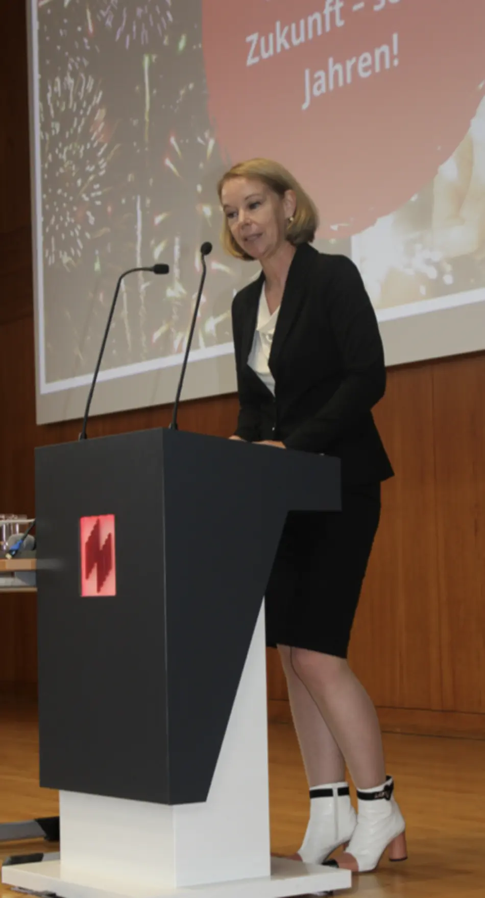 In der anschließenden Festrede trat die Präsidentin der Hochschule Trier, Prof. Dr. Dorit Schumann „Eine Reise durch die Welt der HAW“ an und gab persönliche Einblicke: „Mein Lebensweg ist möglicherweise besonders und zugleich ist dieser Lebensweg doch typisch für alle Professorinnen und Professoren an den Hochschulen für Angewandte Wissenschaften, denn wir alle sind auf unsere eigene Art und Weise besonders“, hob sie hervor hervor und fokussierte die Besonderheiten der HAWs: „Qualität in der Lehre und individuelle Betreuung der Studierenden zeichnen die Hochschule für Angewandte Wissenschaften aus. Wir vernetzen uns regional und international. Wir forschen und betreiben intensiven Wissenstransfer. Wir stellen uns den großen gesellschaftlichen Herausforderungen. Wir stehen für Interdisziplinarität und Innovation. Der Hochschule für Wirtschaft und Gesellschaft gratuliere ich zu 50 Jahren, in denen dies so vorbildlich gelingt. Sie gestalten Zukunft!“, so Schumann.