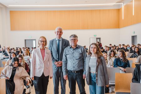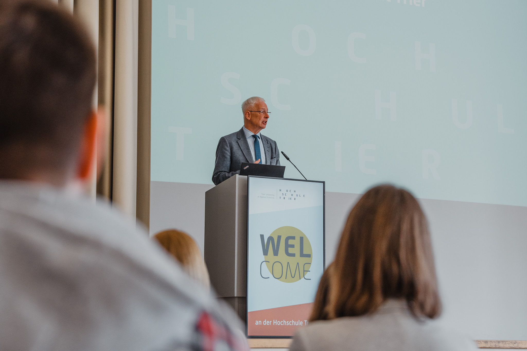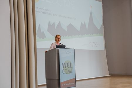 Unsere Präsidentin, Frau Prof. Dr. Dorit Schumann, eröffnete die Veranstaltung am Hauptcampus mit inspirierenden Worten an die Studierenden: „An der Hochschule Trier stehen Sie als Studierende im Mittelpunkt. Wir möchten Sie ermutigen, neugierig zu bleiben, Chancen zu nutzen und Ihr Studium aktiv mitzugestalten. Gemeinsam schaffen wir die Grundlage für Ihren erfolgreichen Start in die Zukunft.“.