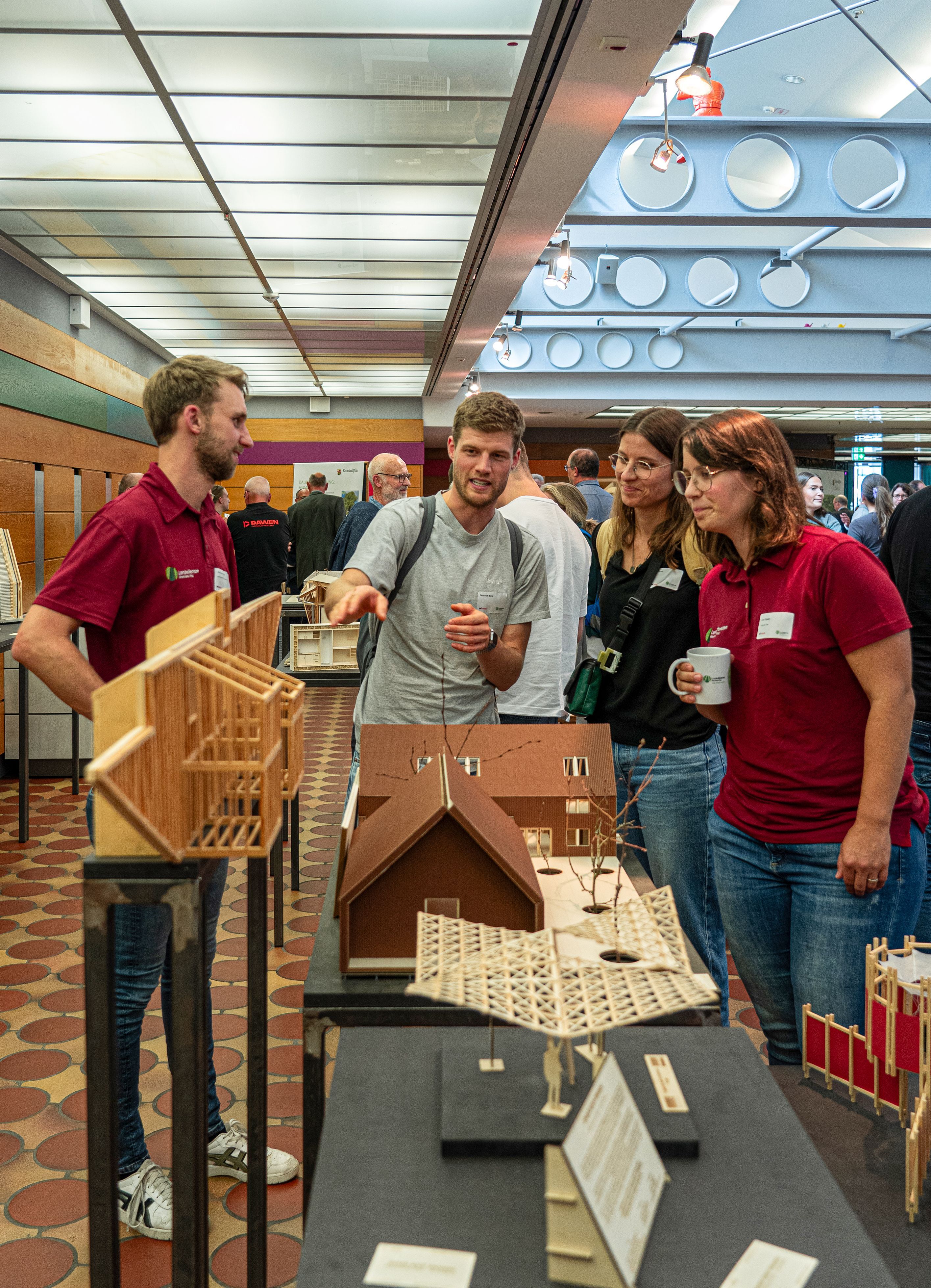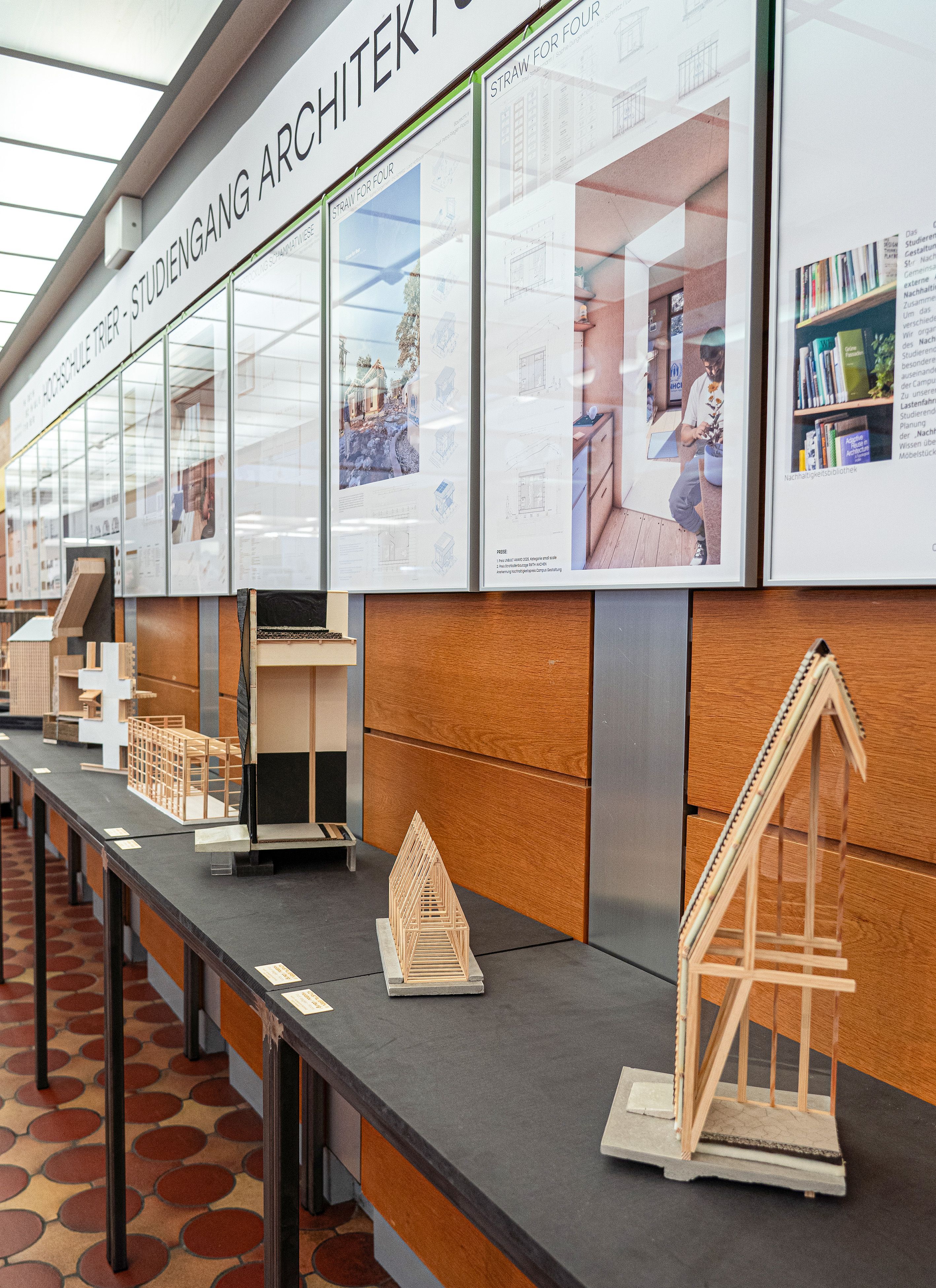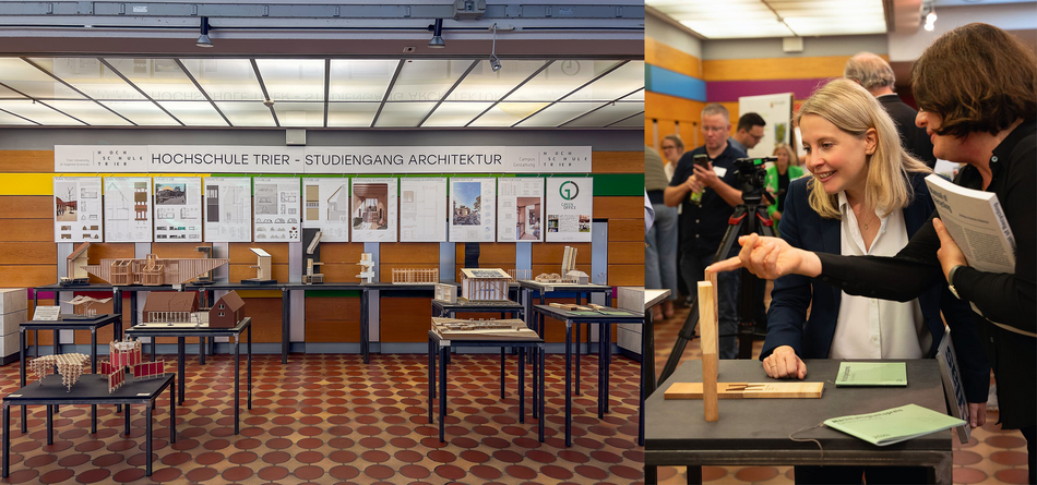 Der Studiengang Architektur des Campus Gestaltung war mit einer umfangreichen und regen besuchten Ausstellung von Studierendenarbeiten zum Thema Holzbau vertreten. Die Projekte zeigten anschaulich, wie sich der nachwachsende Rohstoff Holz konstruktiv, gestalterisch und kreislaufgerecht einsetzen lässt und welchen Beitrag Lehre und Forschung zur Weiterentwicklung nachhaltiger Bauweisen leisten.