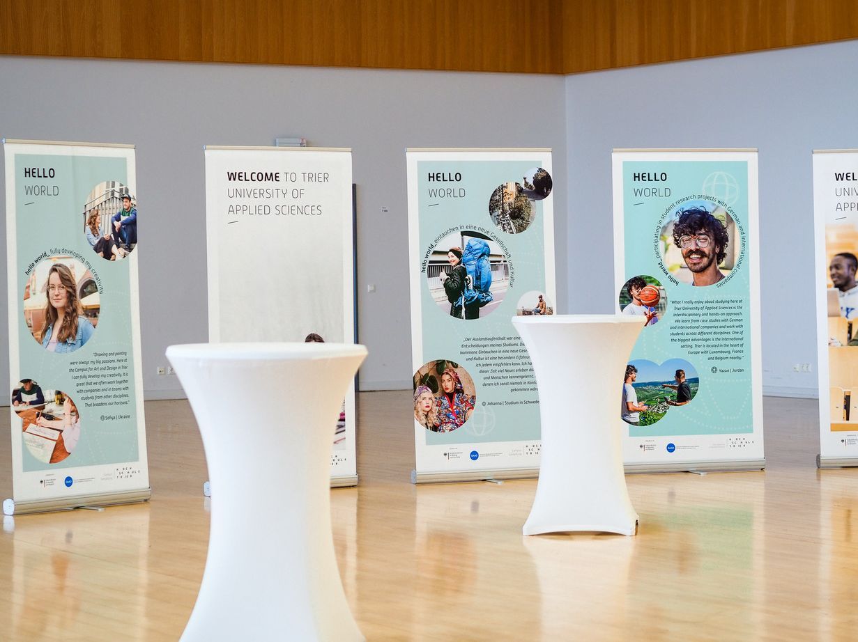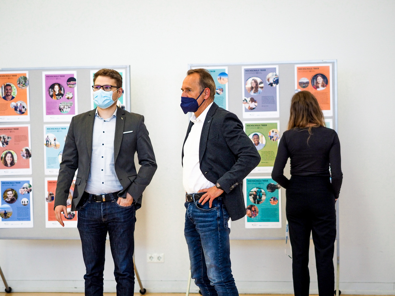 Am 26.04.22 stellten sich die beiden Internationalisierungsprojekte „Hochschule Trier International: Übergänge erfolgreich gestalten“ und „Hochschule Trier International: Global Innovation for Sustainable Futures“ in Anwesenheit der Präsidentin, Prof. Dr. Dorit Schumann, der Hochschulöffentlichkeit vor. Eine begleitende multimediale Ausstellung gab vielfältige Einblicke in bereits realisierte Internationalisierungsinitiativen und zeigten die Potenziale einer weltoffenen Hochschule Trier auf.