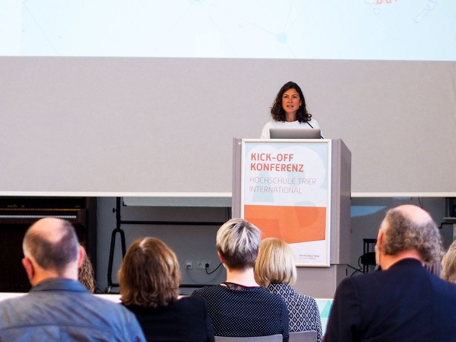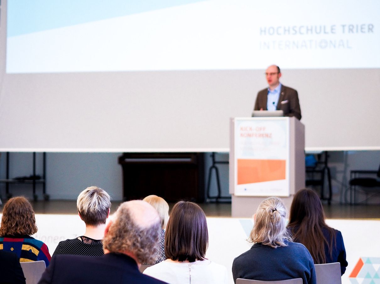 Die Kick-off Veranstaltung startete in der Aula am Hauptcampus Trier am 26.04.22 mit einer Begrüßung des Vizepräsidenten für Forschung und Projektleiters, Prof. Dr. Henrik te Heesen, der auf das Vorgängerprojekt „Hochschule Trier International: Zuhause und in die Welt“ zurückblickte und trotz Corona eine positive Bilanz zog: „Mithilfe der DAAD-Förderung konnten wir die Internationalisierung an der Hochschule Trier in den letzten zwei Jahren maßgeblich voranbringen und auf ein strategisches Fundament stellen. Gemeinsam mit allen Hochschulangehörigen haben wir eine Internationalisierungsstrategie erarbeitet, die im kommenden Monat offiziell vom Senat verabschiedet wird und so die Weichen für die nächsten fünf Jahre stellt. Mit den zwei neuen Internationalisierungsprojekten können wir nun nahtlos an diese Erfolge anknüpfen und neue Akzente setzen.“