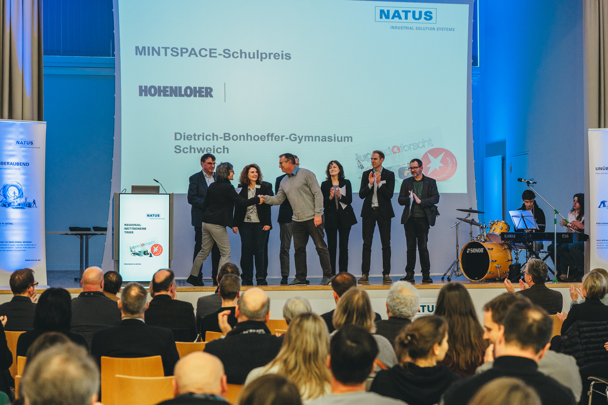 Höhepunkt des Wettbewerbstages war die Feierstunde, in der die Teilnehmerinnen und Teilnehmer für ihre herausragenden Leistungen geehrt wurden. Die Eröffnung der Feierstunde übernahm Anja Natus (NATUS GmbH & Co. KG), gefolgt von einem Grußwort durch Hochschulpräsidentin Prof. Dr. Dorit Schumann und dem Oberbürgermeister der Stadt Trier, Wolfram Leibe. Die Preisverleihung erfolgte durch die Regionalwettbewerbsleiterin Dr. Sabine Servaty. Die Siegerinnen und Sieger der Regionalebene qualifizieren sich für die Landeswettbewerbe im März und April 2026. Den Abschluss der 61. Runde von Jugend forscht bildet das Bundesfinale vom 28. bis 31. Mai 2026 in Herzogenaurach – gemeinsam ausgerichtet von der Schaeffler AG als Bundespatenunternehmen und von der Stiftung Jugend forscht e. V.