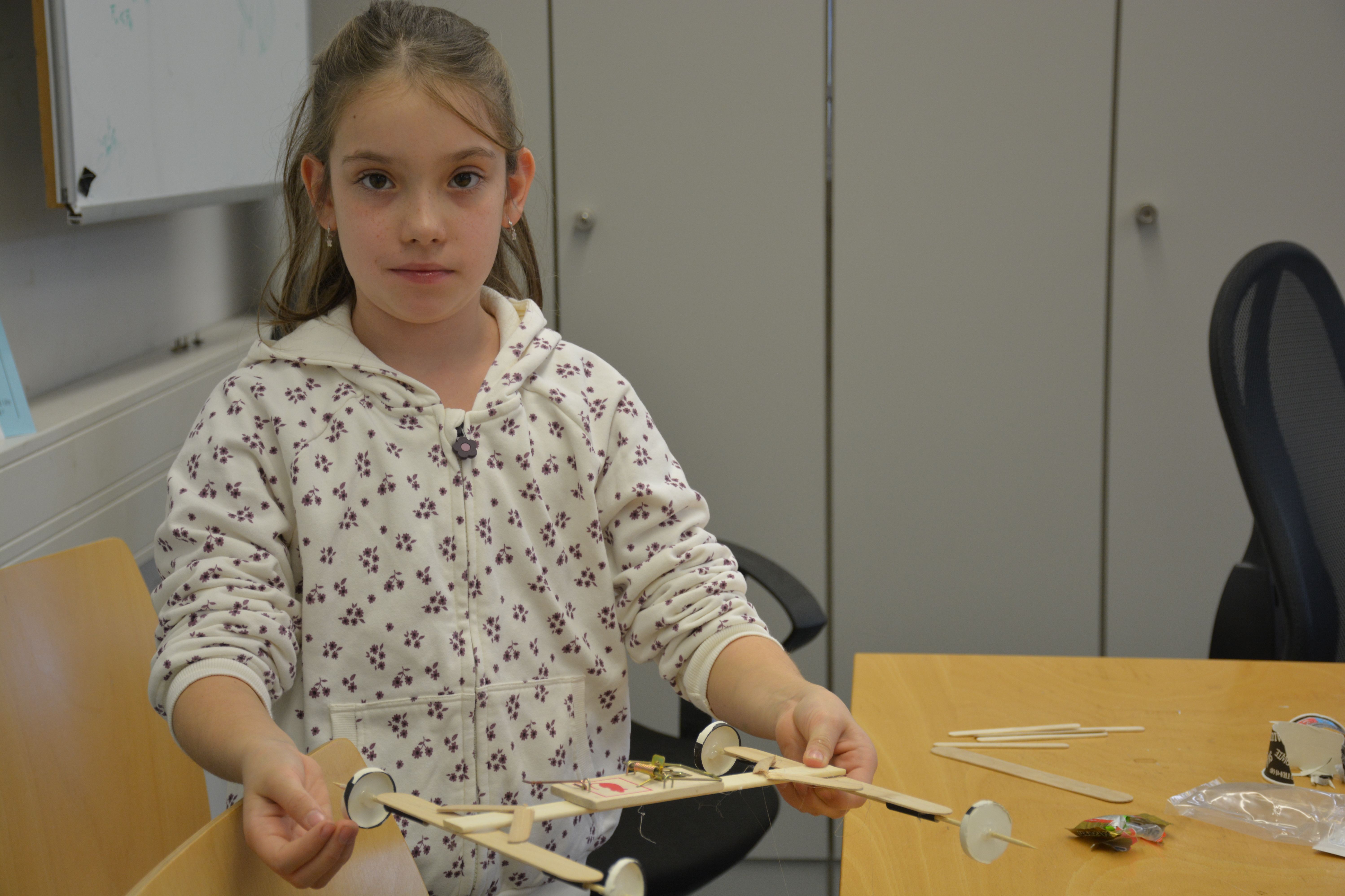 Nach einer kurzen Einführung in die Idee, wie man mit einer einfachen Mausefalle ein Auto antreiben kann, ging es direkt ans Werk: sägen, schrauben, kleben, tüfteln. Mit Geduld, Kreativität und ein bisschen Hilfe der Studierenden entstanden ganz unterschiedliche kleine Fahrzeuge – jedes ein echtes Unikat.