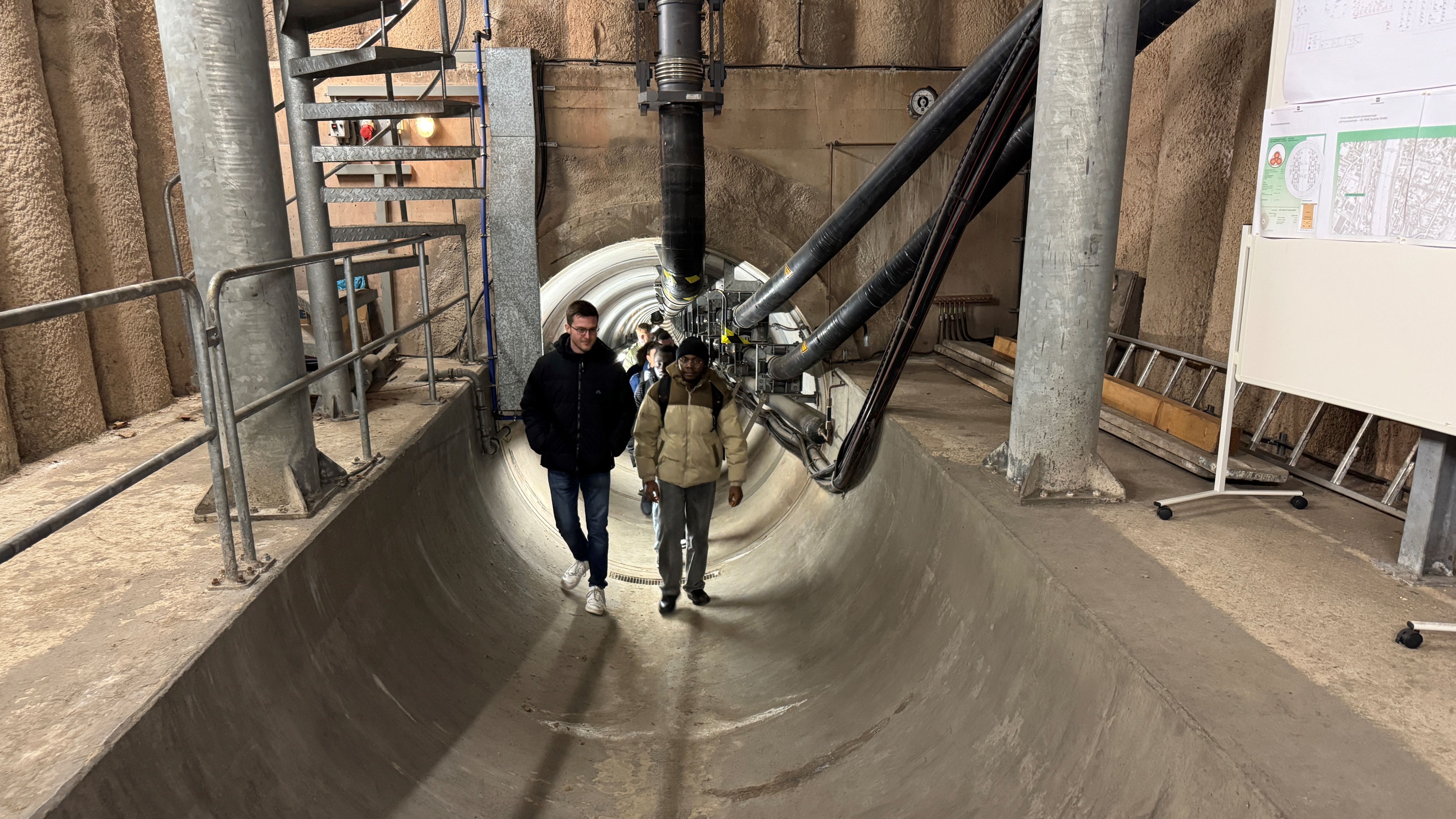 Abteilungsleiter Falko Willmes erläuterte Bau und Leistungsmerkmale dieses Bauwerks, dass Strom, Wasser und Gas unter der Mosel überträgt. Prof. Brechtken betonte die gute Zusammenarbeit mit den Stadtwerken Trier und würdigte die Bereitschaft, den Studierenden Einblicke in diese herausfordernde Art der Energieübertragung zu ermöglichen.
